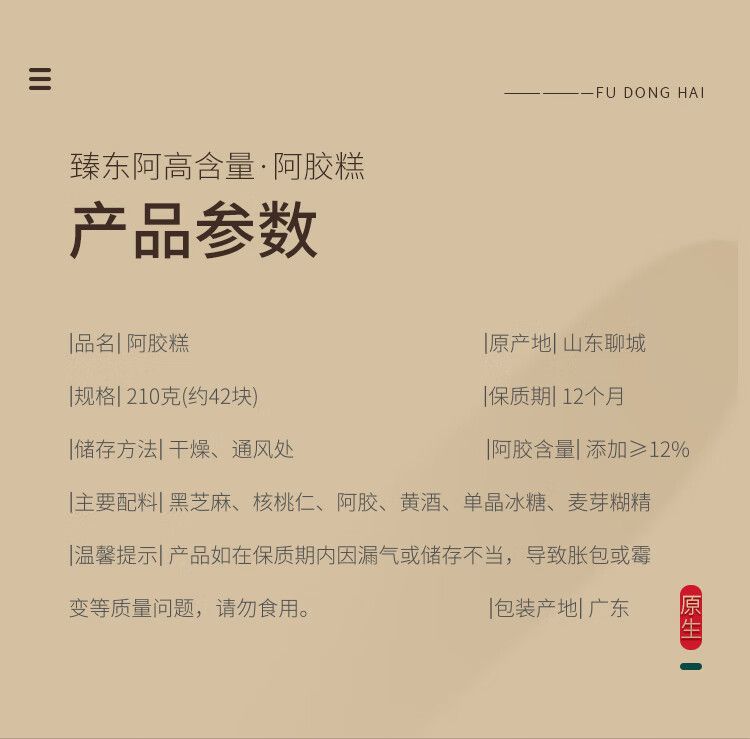 商品名称:【福东海】阿胶糕210克/盒