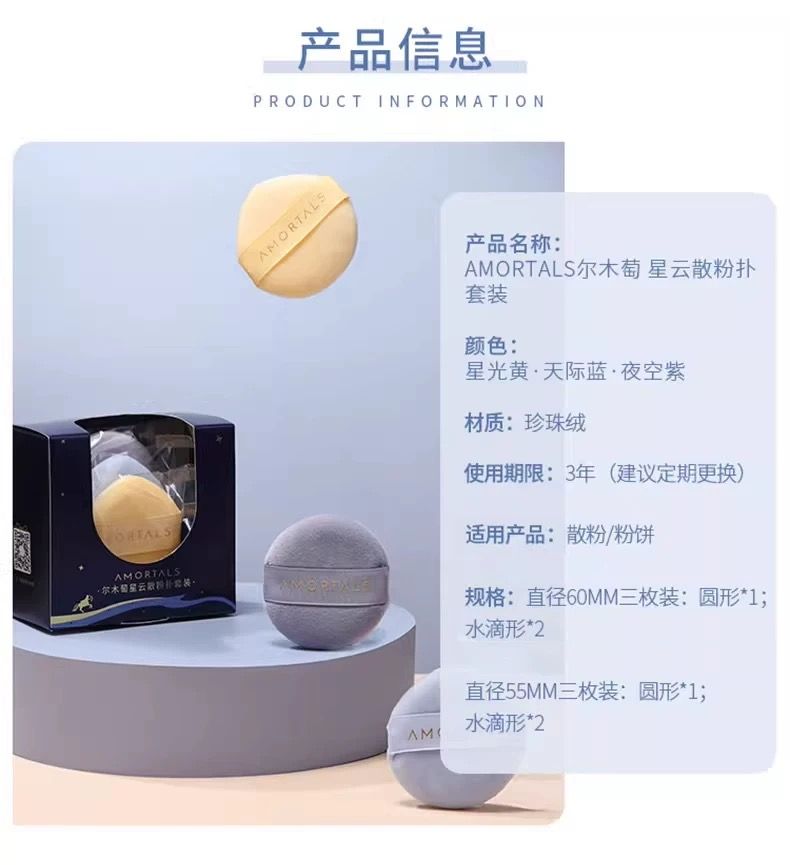 商品名称:尔木萄 星云散粉扑套装(大 60*15mm)三枚