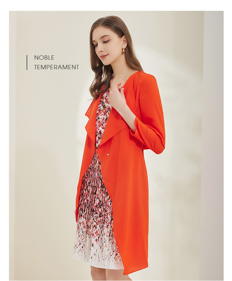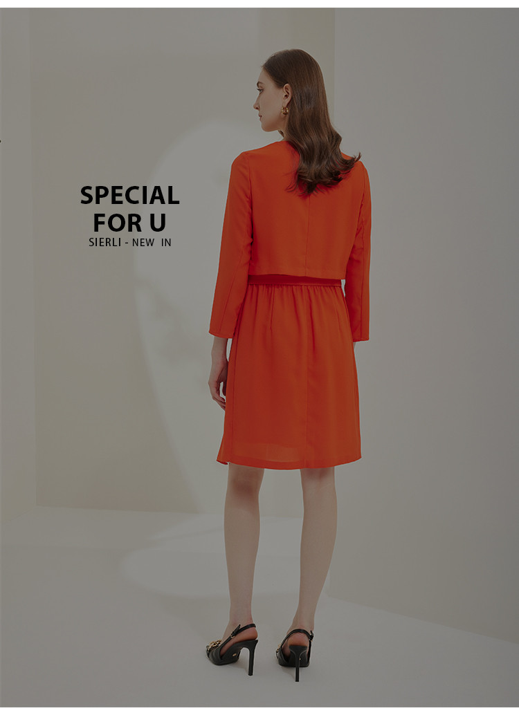商品名称:商场同款春秋纯色中长款圆领气质假两件修身连衣裙 682463