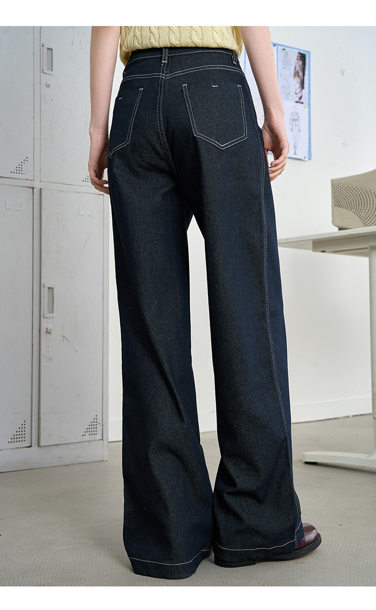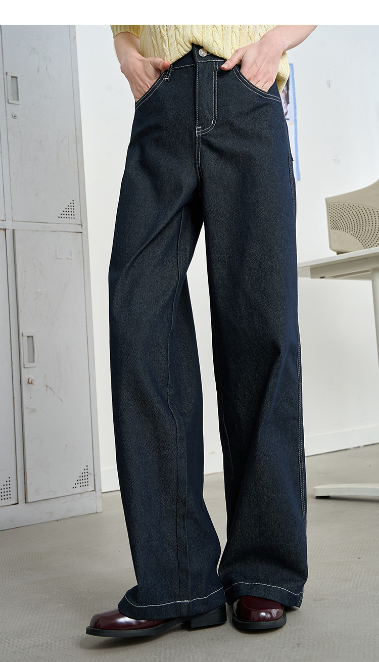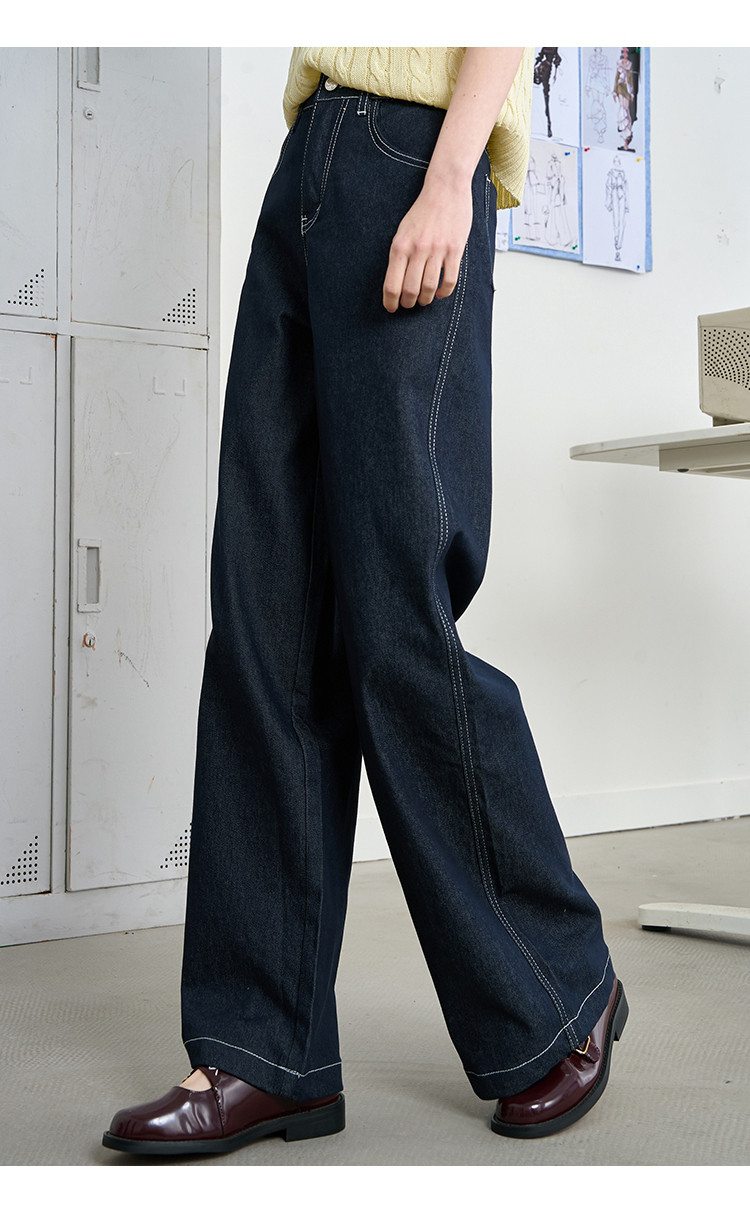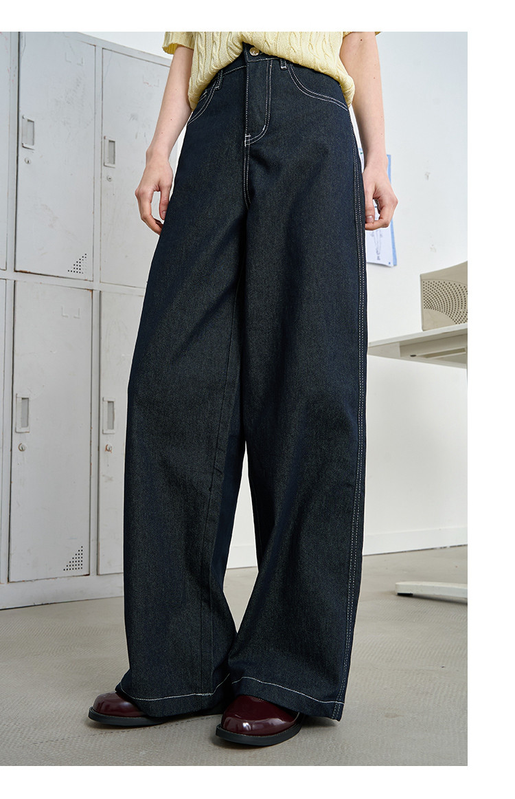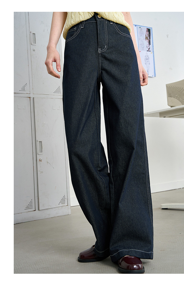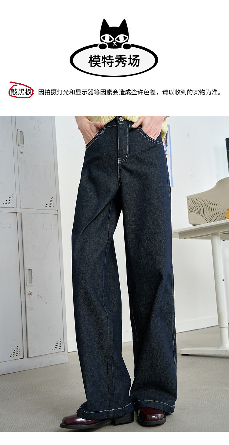 商品名称:深色高腰显瘦垂感宽松直筒裤2025夏季休闲百搭女式牛仔裤 706781