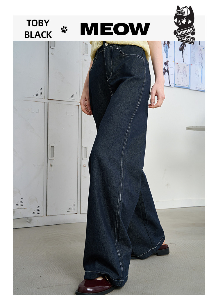 深色高腰显瘦垂感宽松直筒裤2025夏季休闲百搭女式牛仔裤 706781