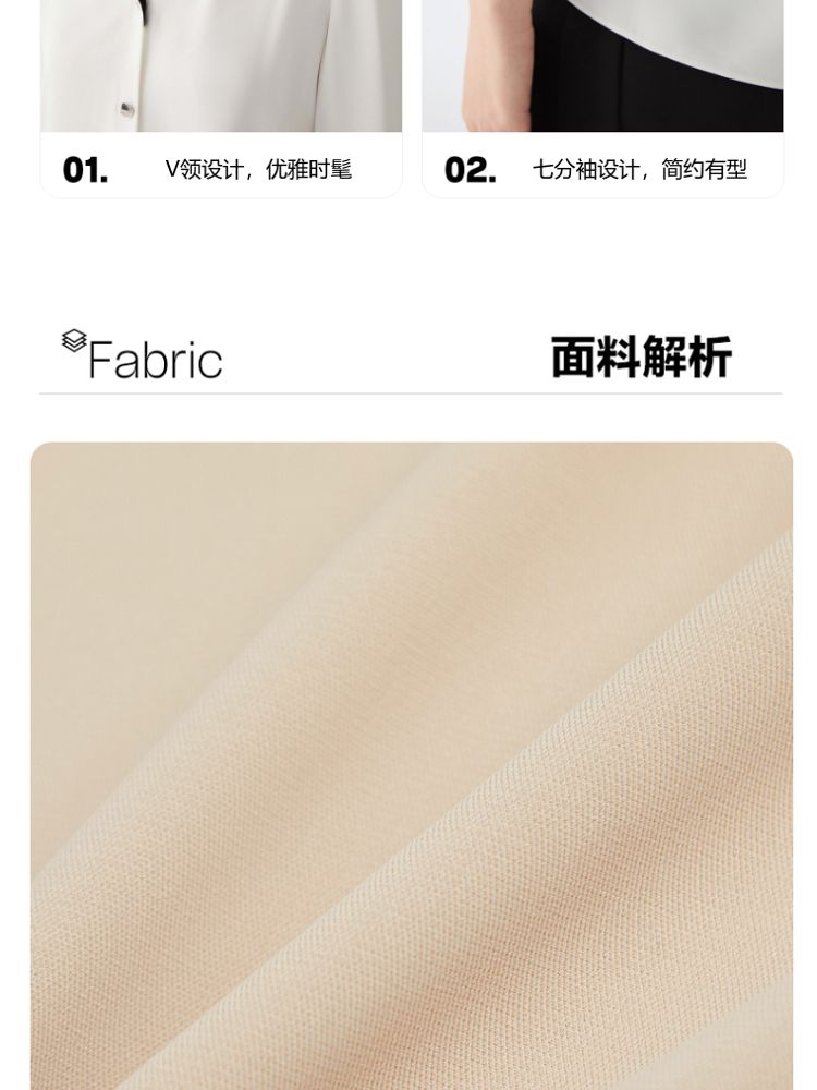 商品名称:【专柜同款】春夏V领七分袖H版型简约衬衫女气质百搭时尚 913553