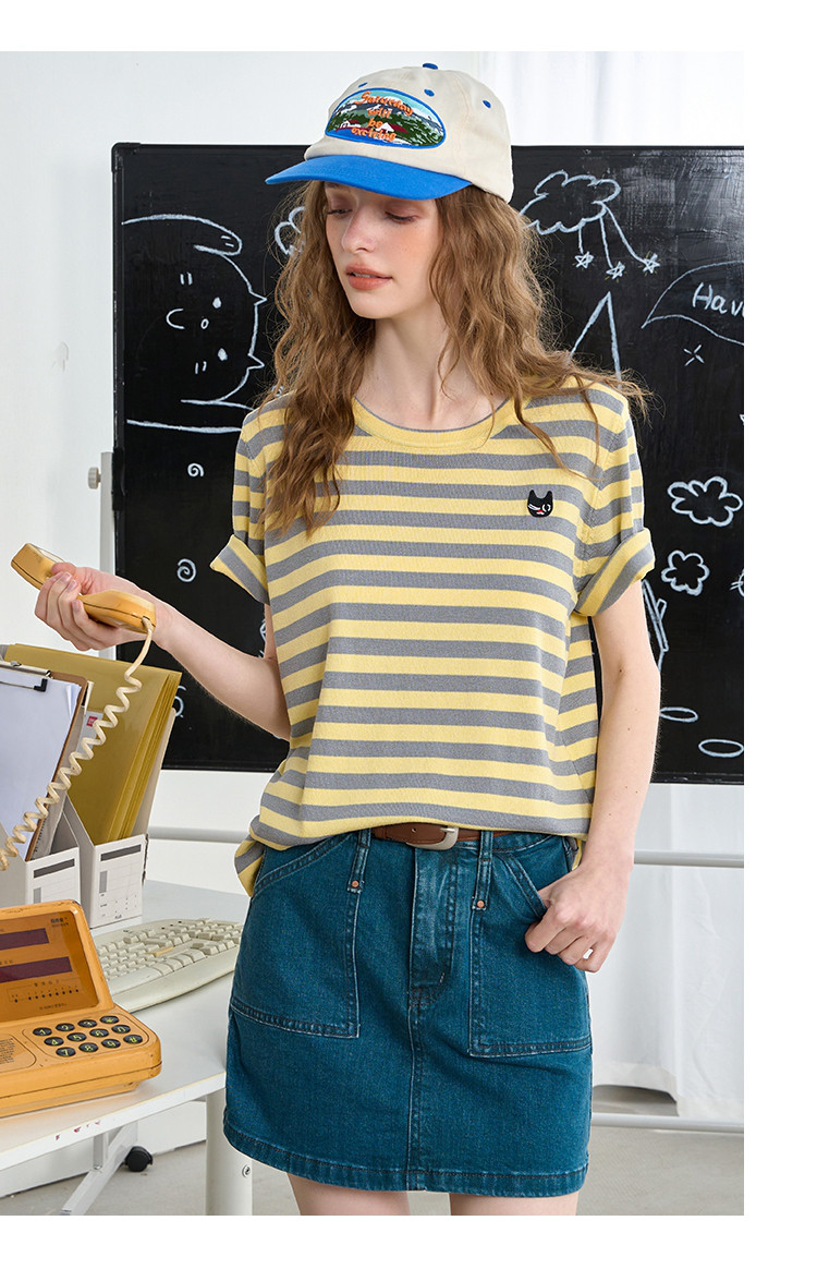 韩版圆领撞色宽松休闲短袖上衣2025夏季百搭舒适女式针织衫 809181