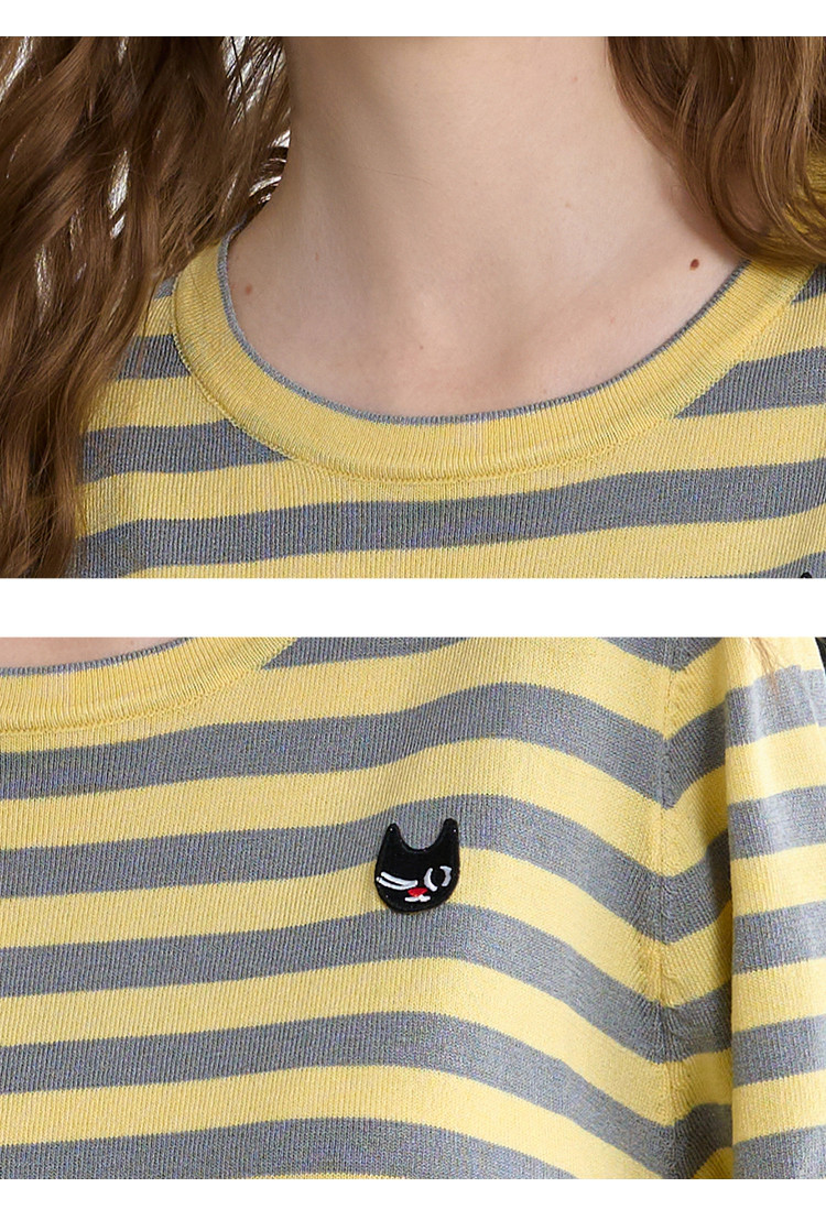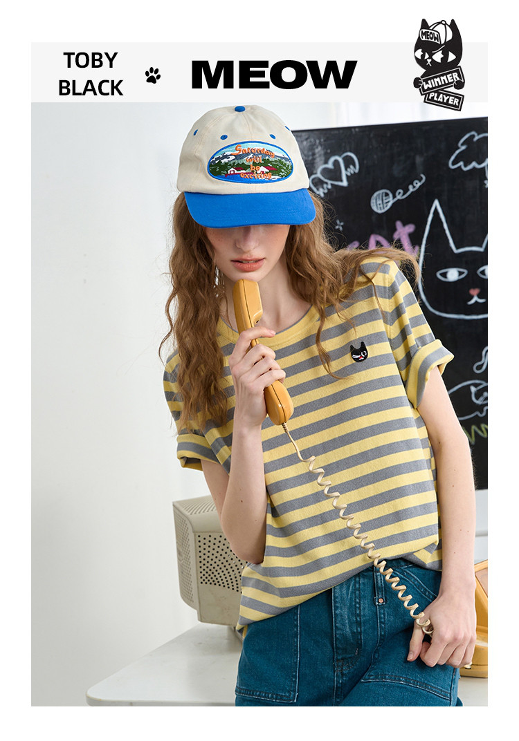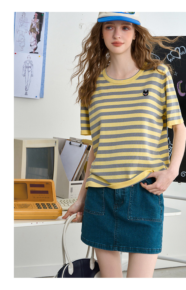 商品名称:韩版圆领撞色宽松休闲短袖上衣2025夏季百搭舒适女式针织衫 809181