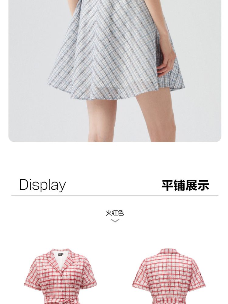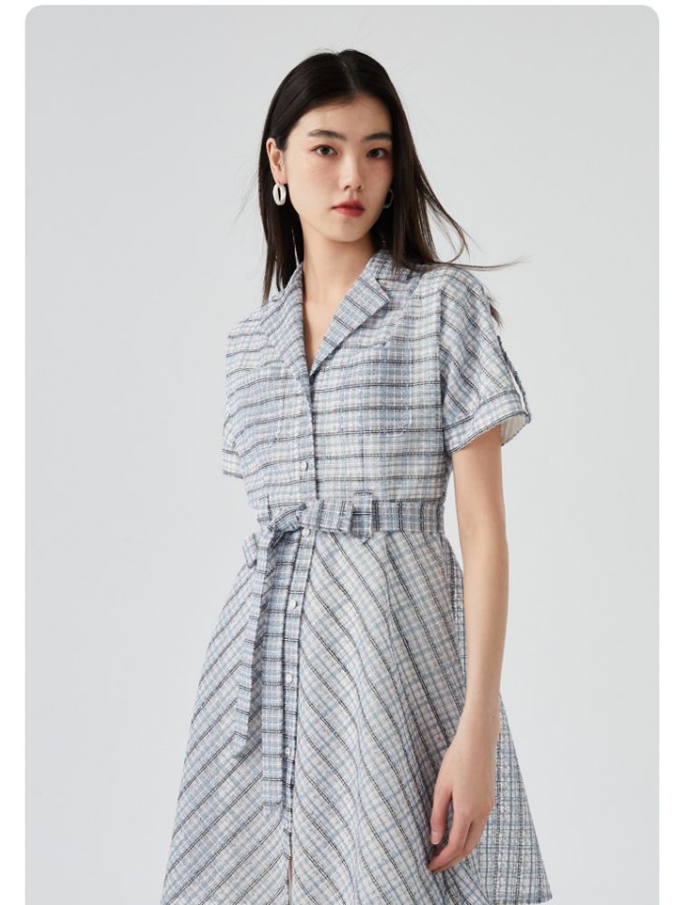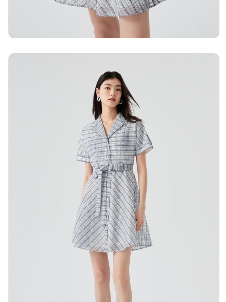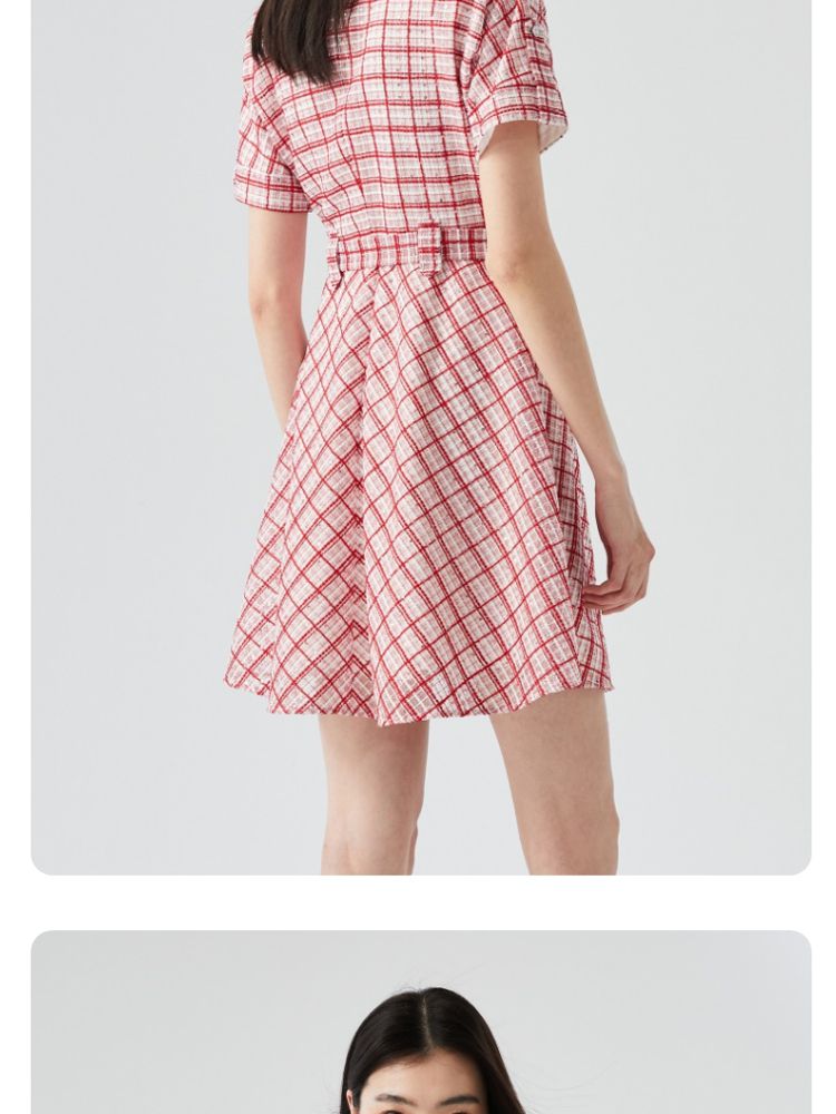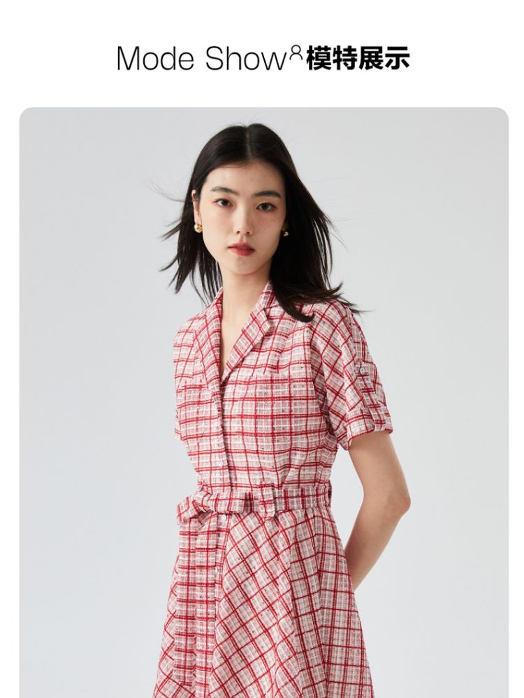 商品名称:【小香风】专柜款夏中长蝙蝠短袖翻领收腰通勤连衣裙 477457