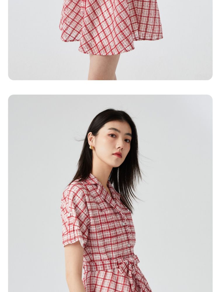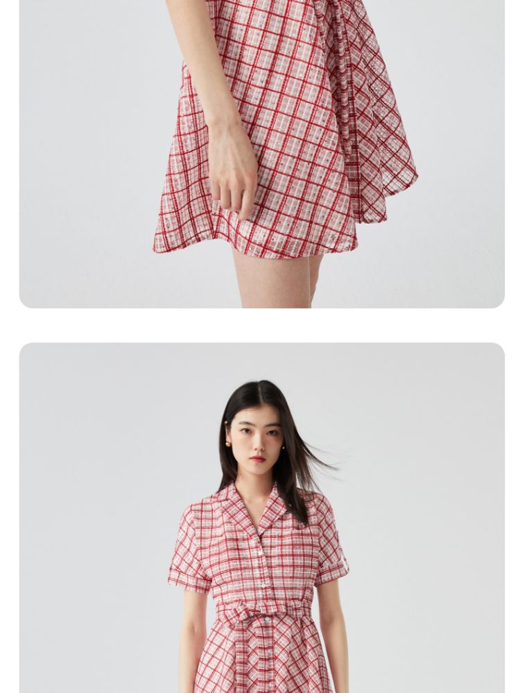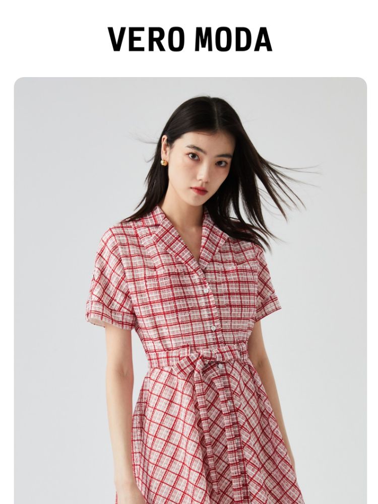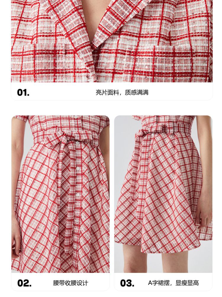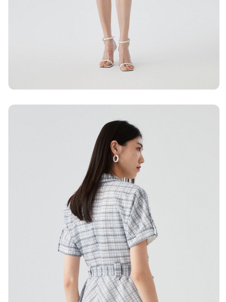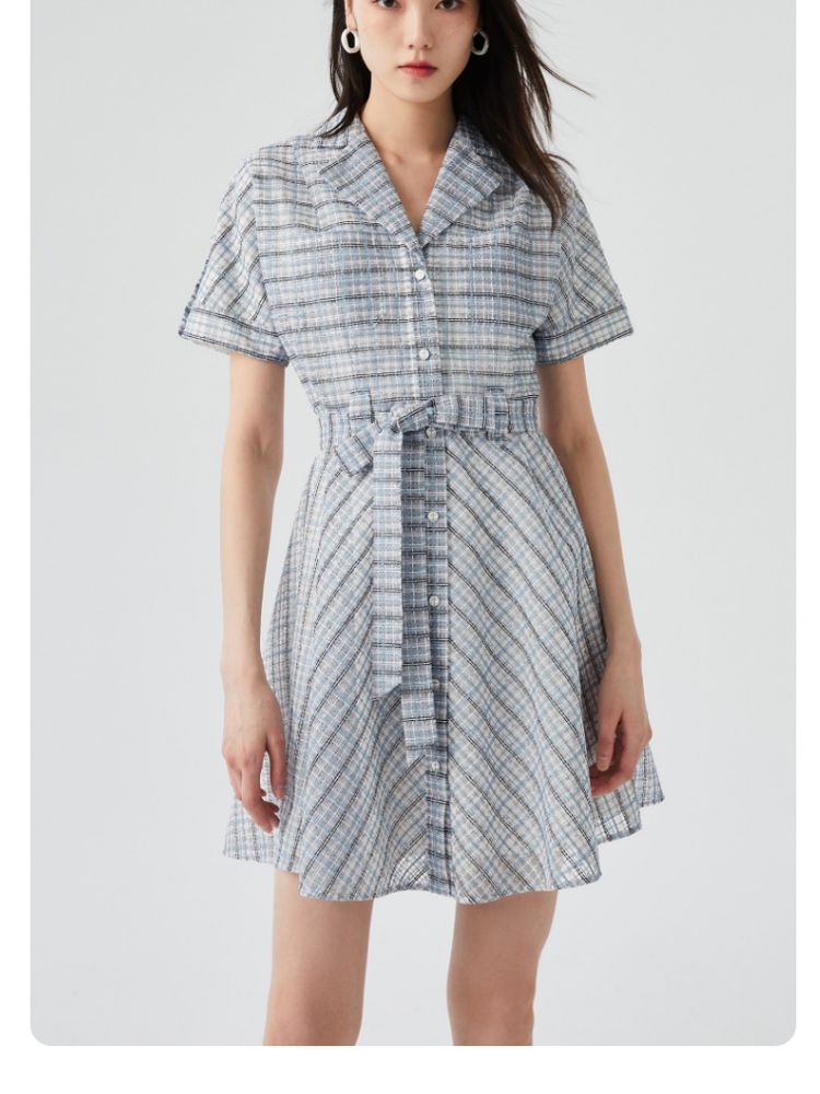 商品名称:【小香风】专柜款夏中长蝙蝠短袖翻领收腰通勤连衣裙 477457