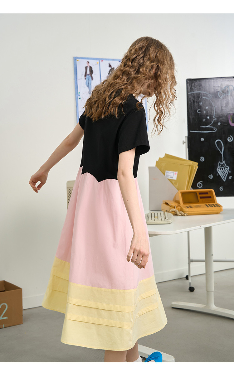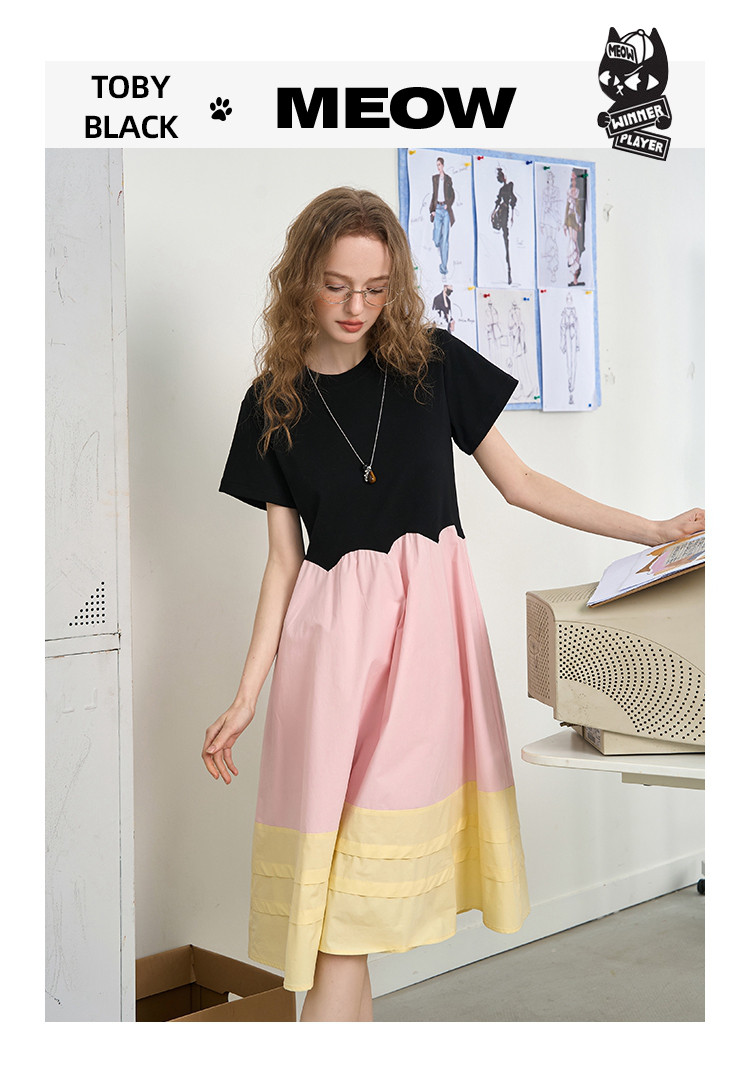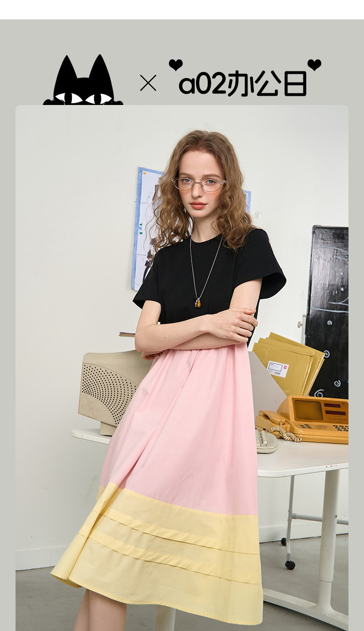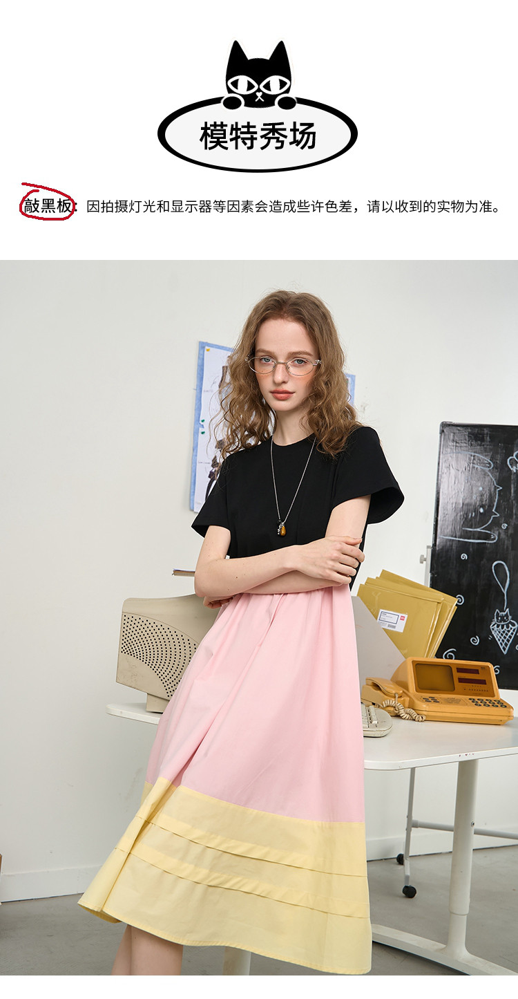 商品名称:垂感花瓣分割拼接宽松短袖半身裙2025夏季百搭休闲女式连衣裙 403997
