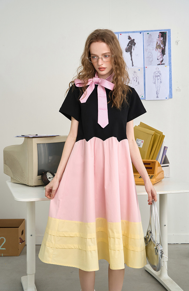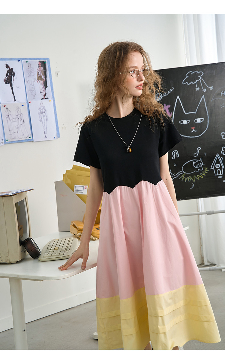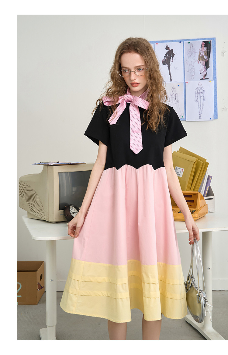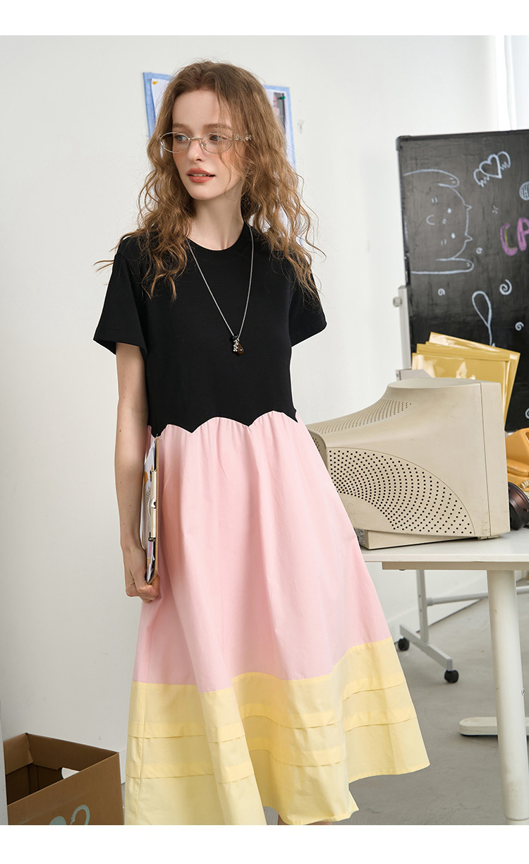 商品名称:垂感花瓣分割拼接宽松短袖半身裙2025夏季百搭休闲女式连衣裙 403997