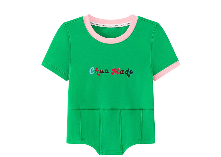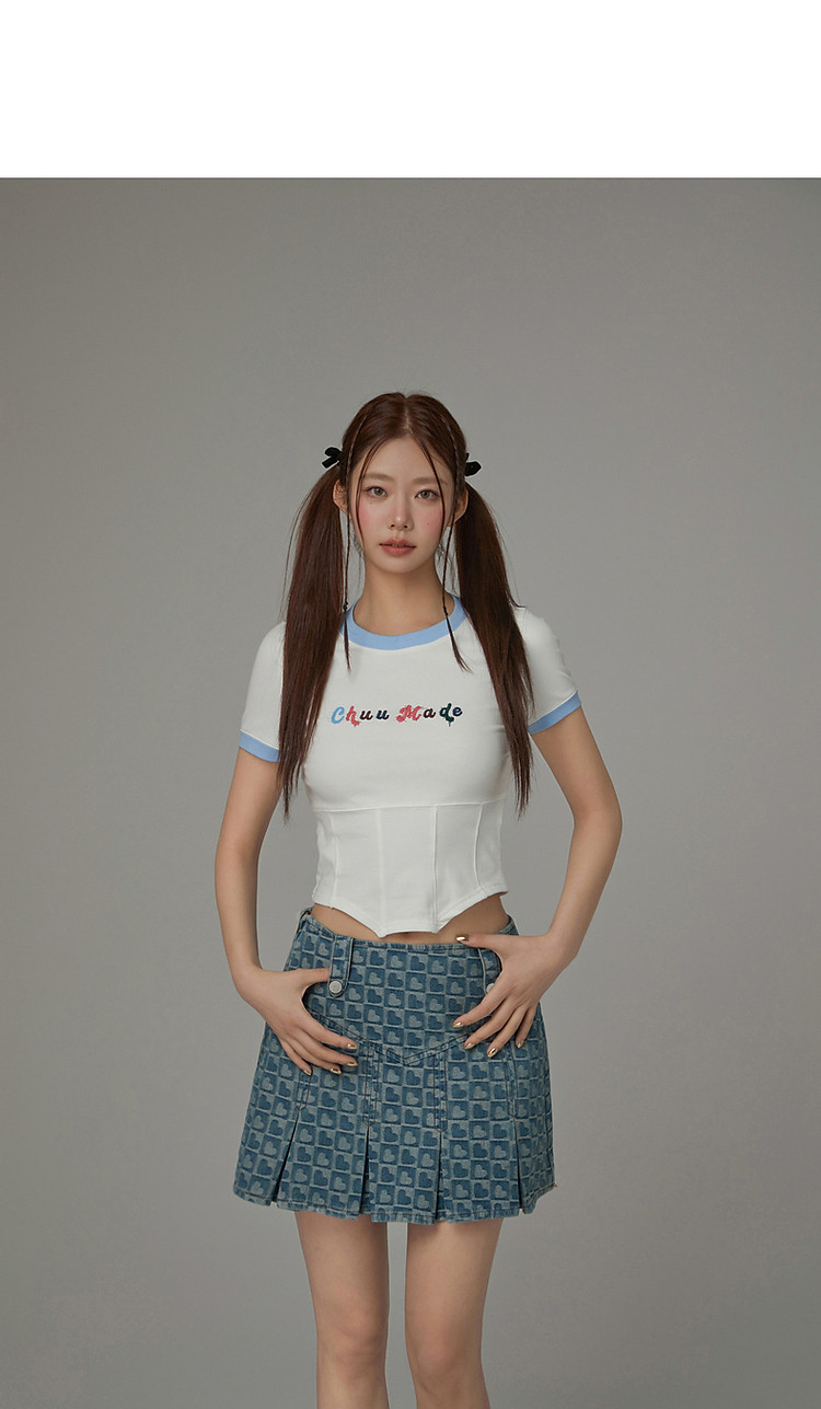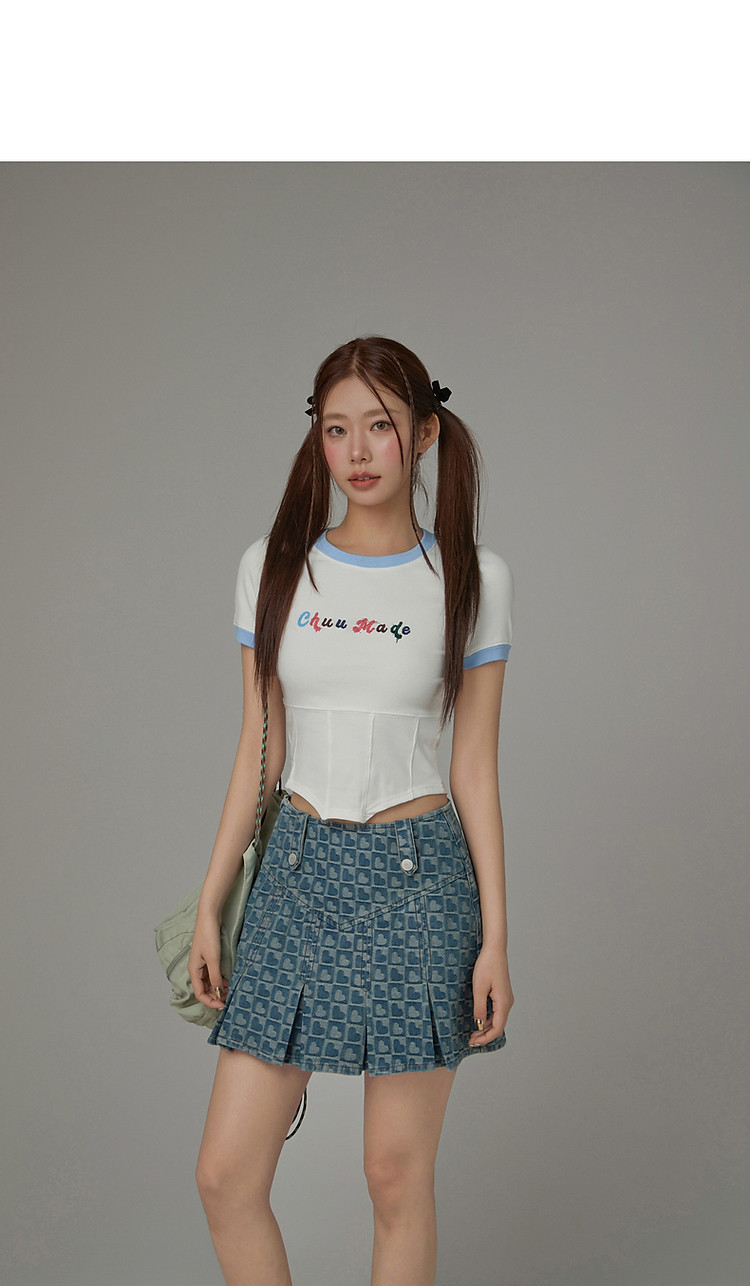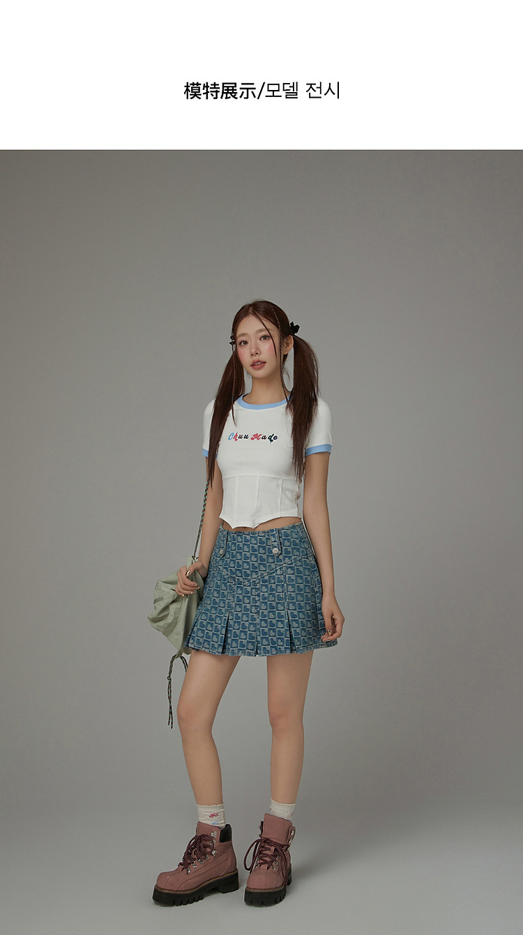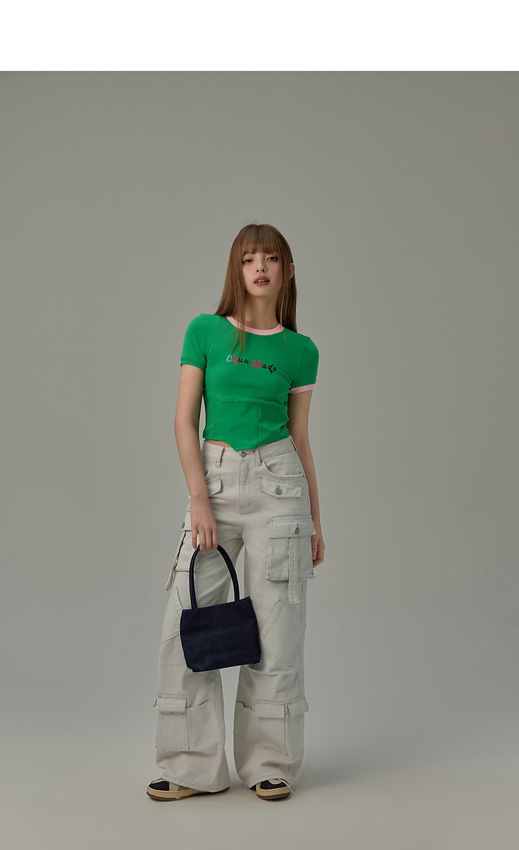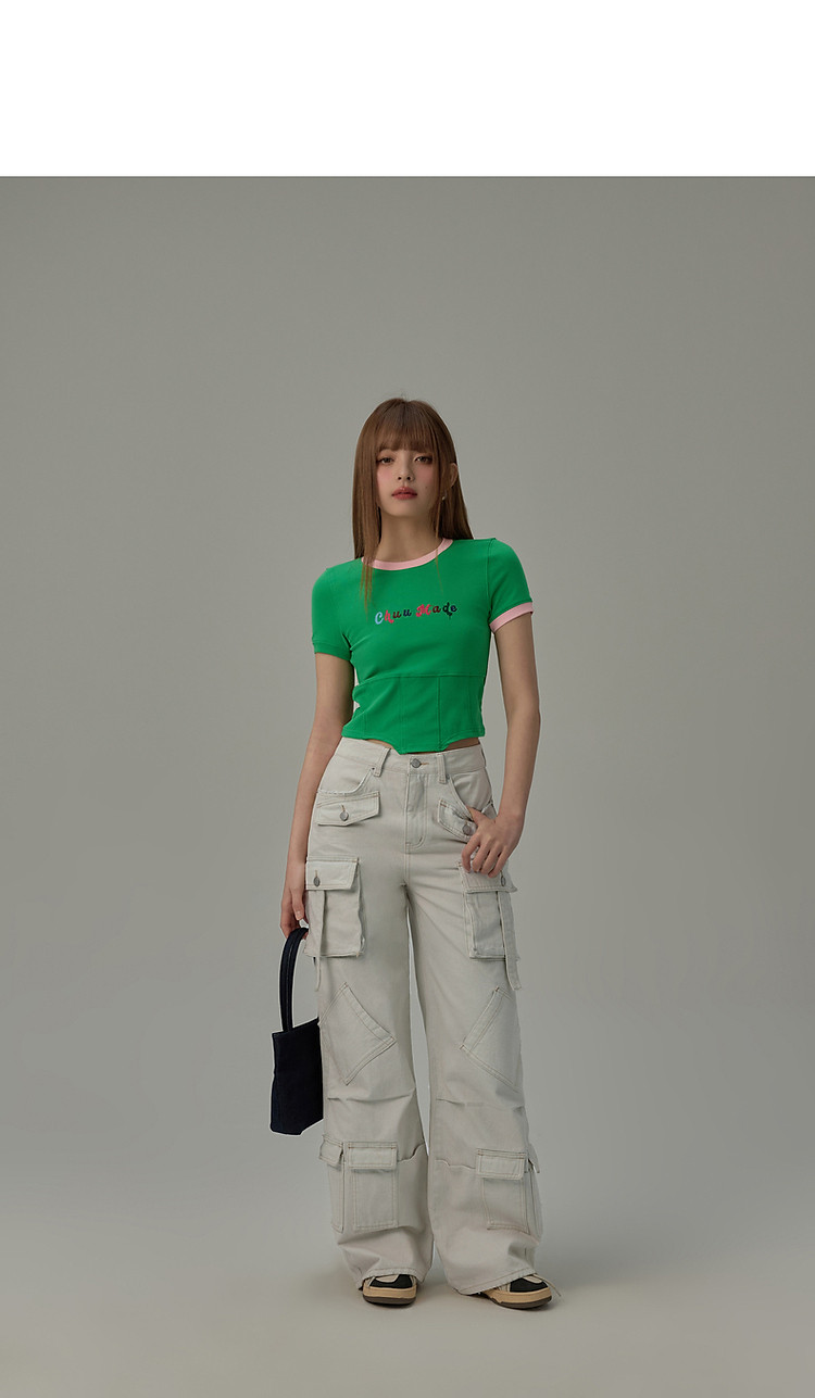 商品名称:彩色字母绣花T恤女2025夏学院风撞色拼接修身短袖上衣 345747