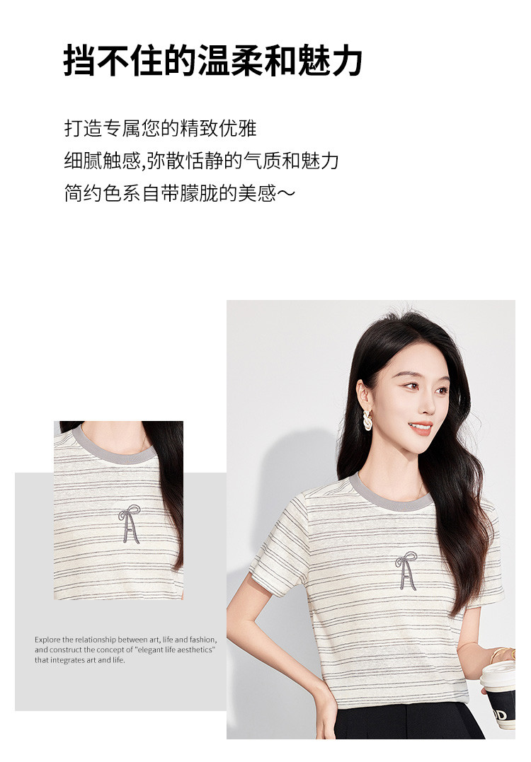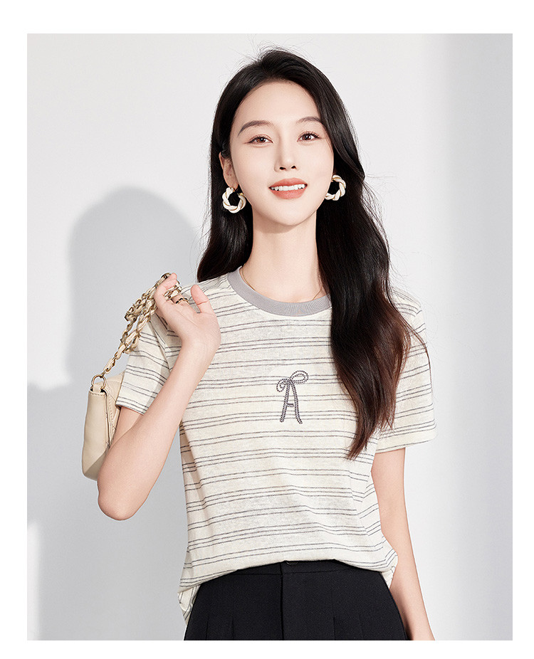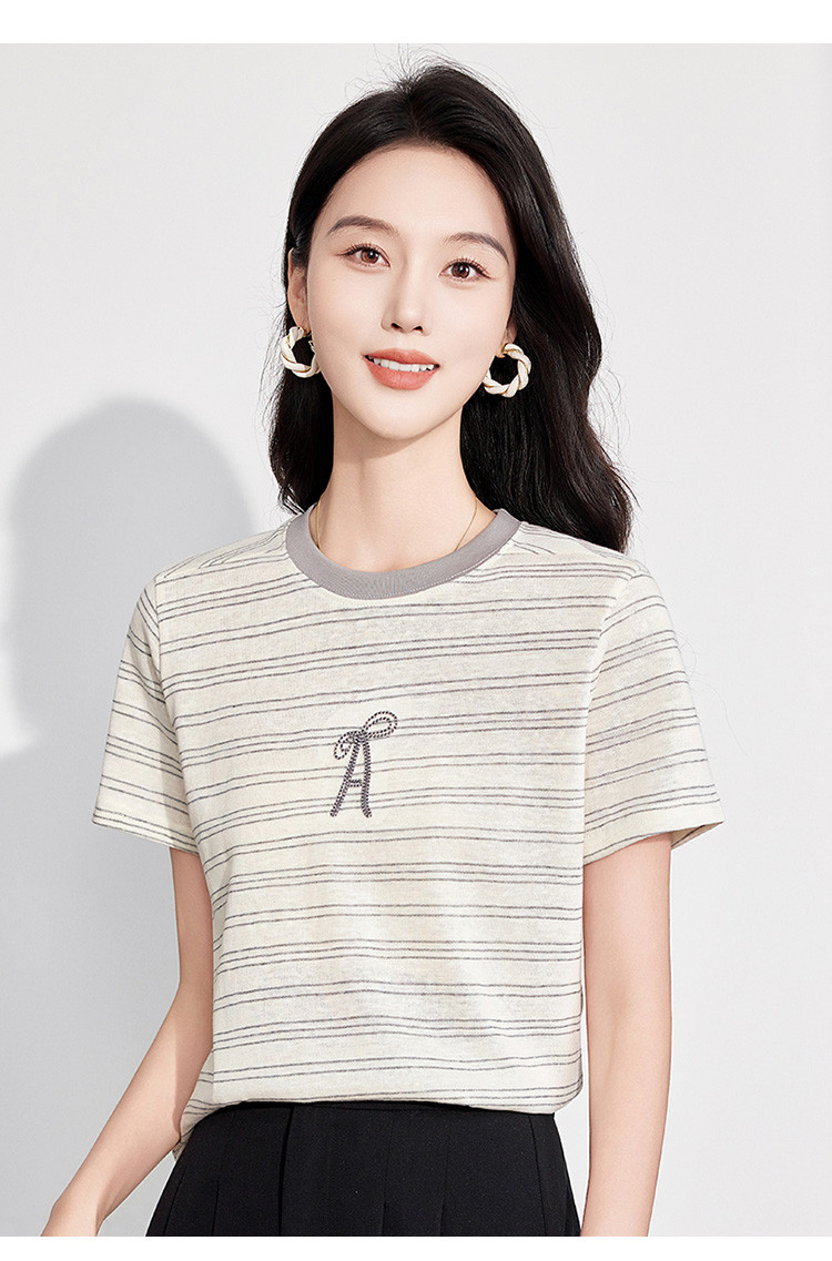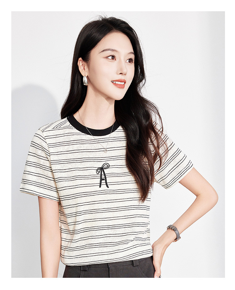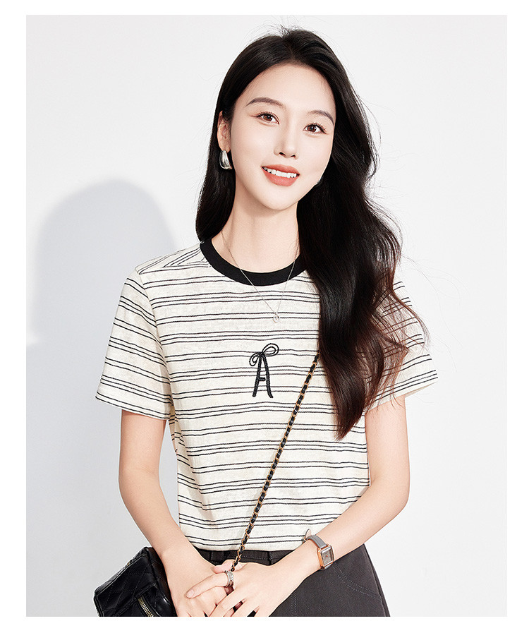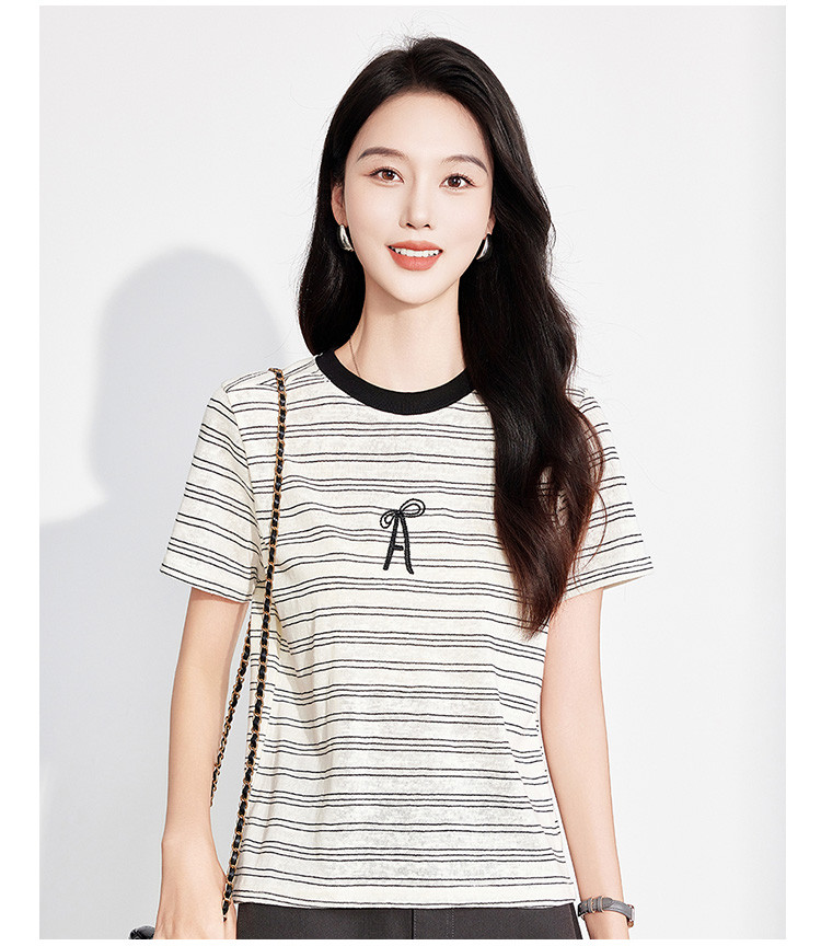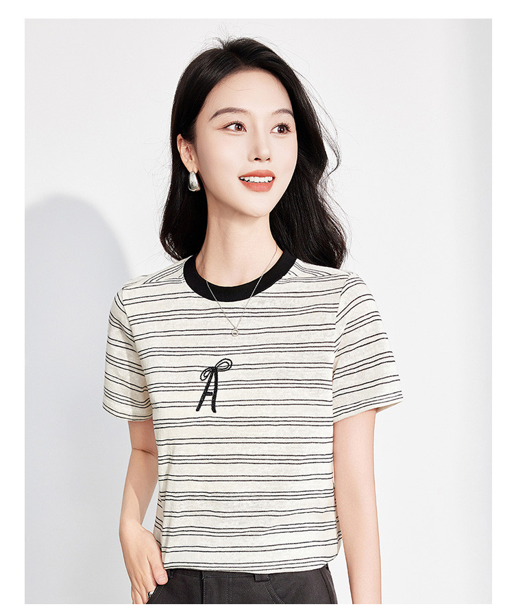 商品名称:25夏季新款小个子减龄小清新条纹刺绣T恤女式甜美可爱短袖上衣 850655