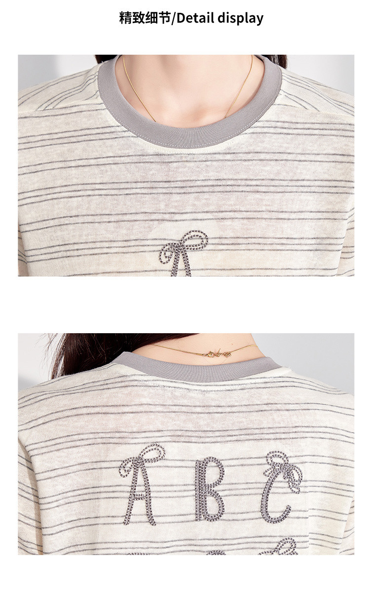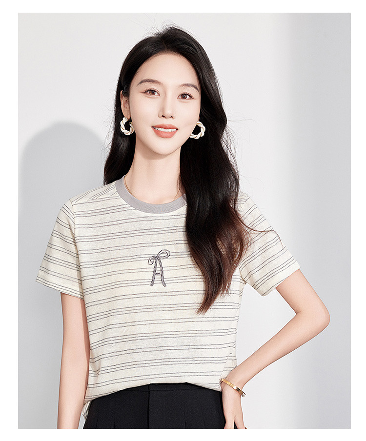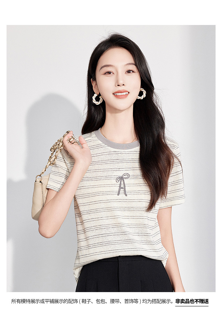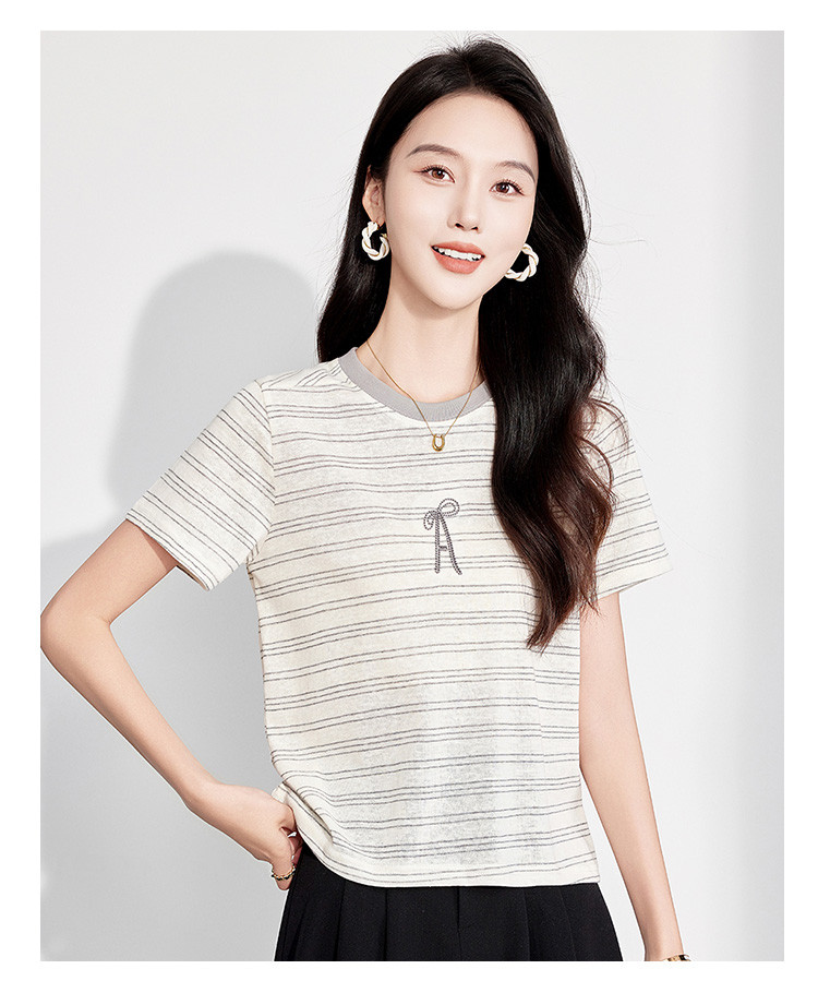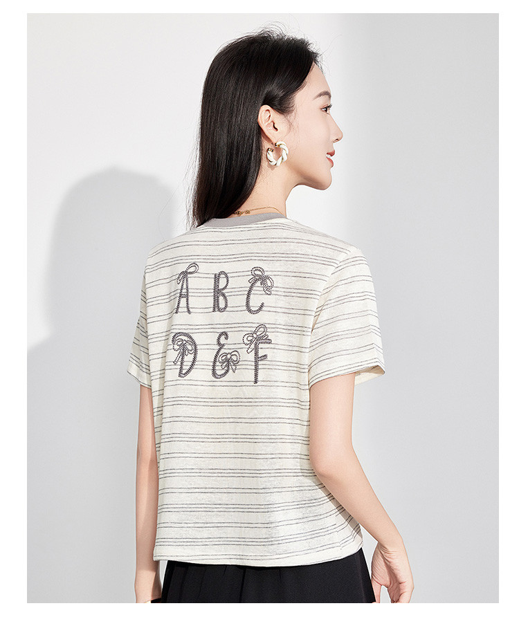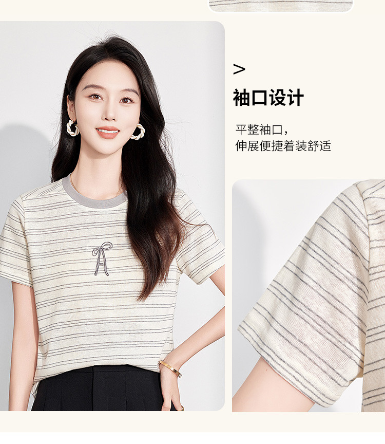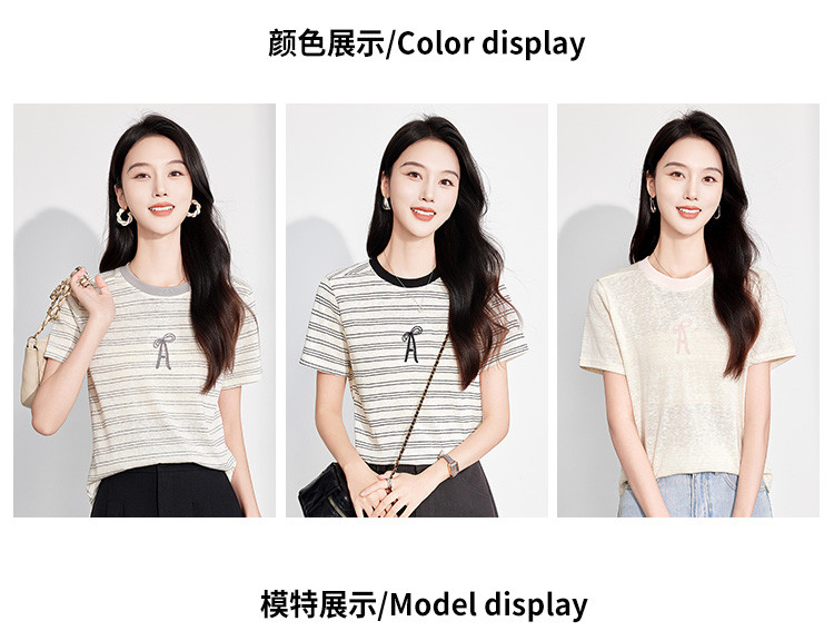 商品名称:25夏季新款小个子减龄小清新条纹刺绣T恤女式甜美可爱短袖上衣 850655