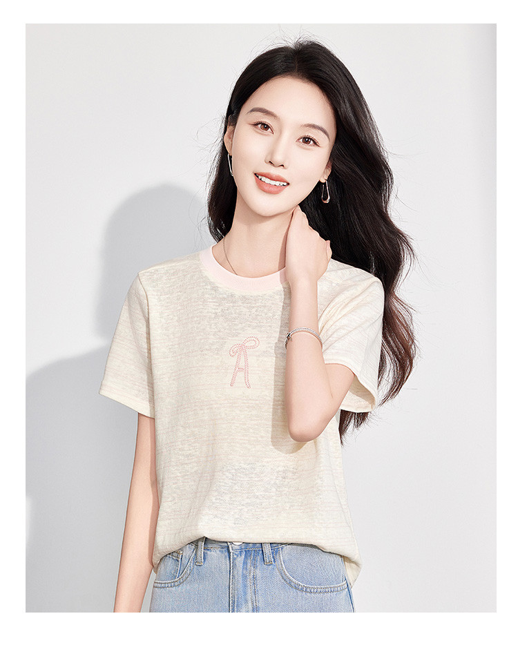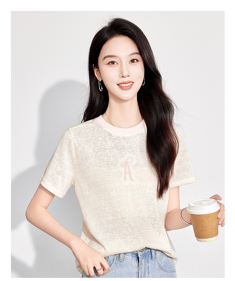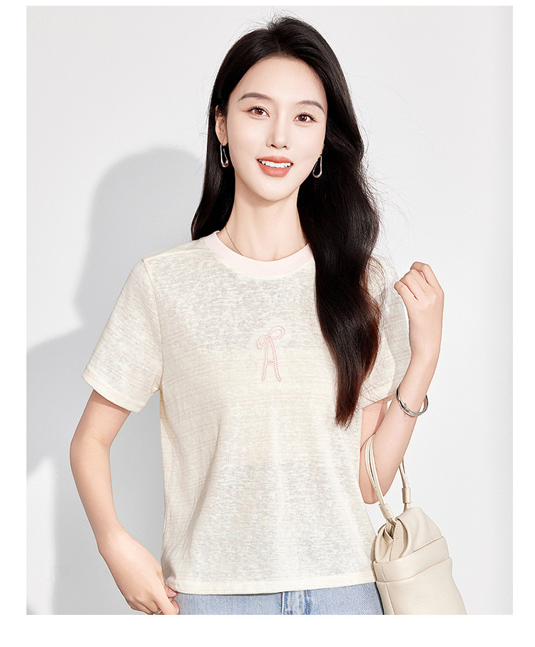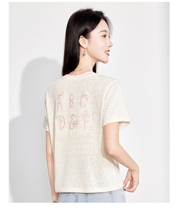 25夏季新款小个子温柔文艺风花朵刺绣T恤女式休闲套头短袖上衣 797407
