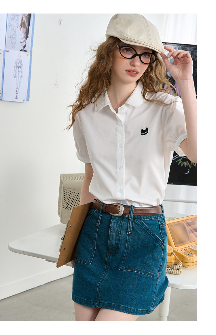 商品名称:纯色小众显瘦气质翻领衬衣2025夏季休闲百搭女式衬衫 694493
