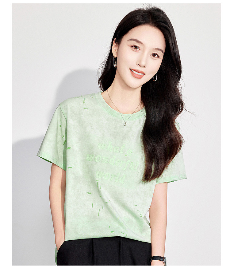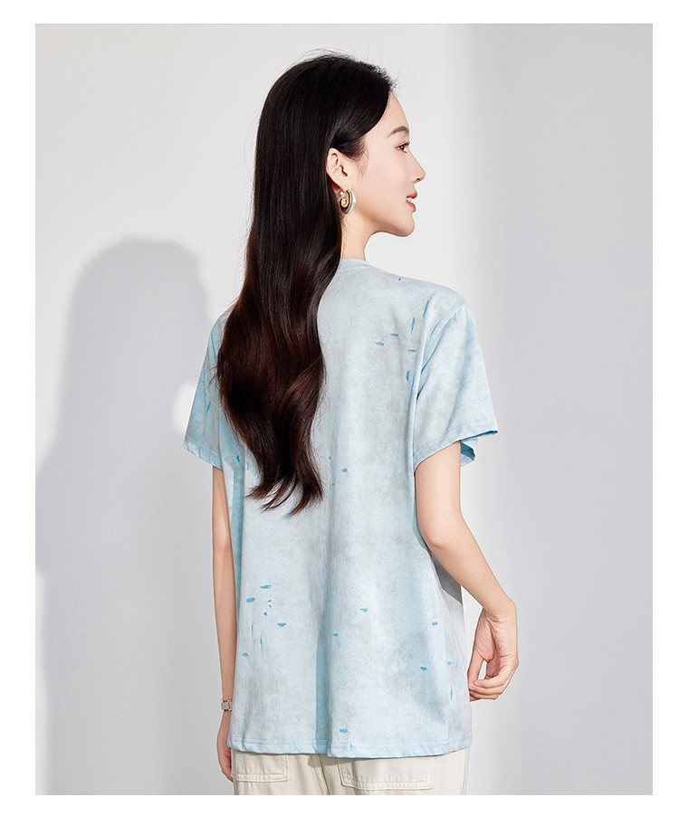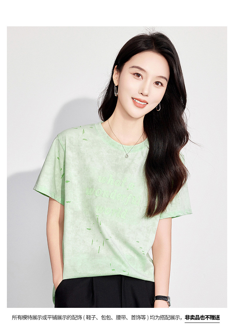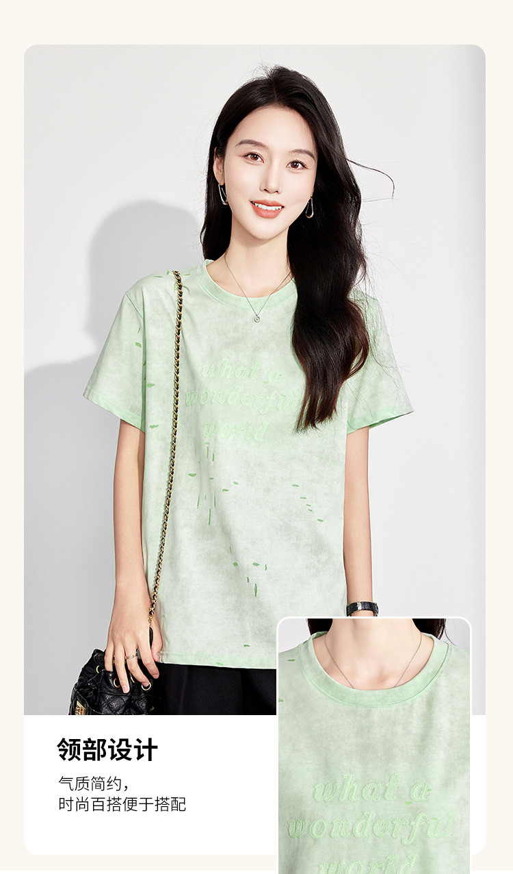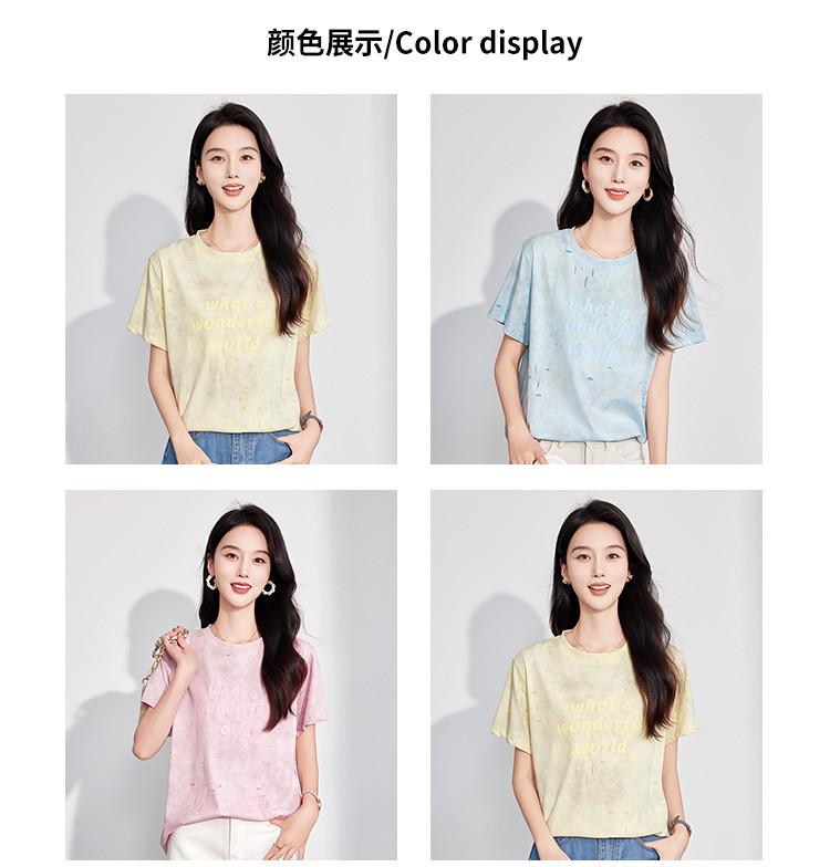 商品名称:25夏季新款简约字母晕染做旧短袖T恤女日常元气学院风套头上衣 511839