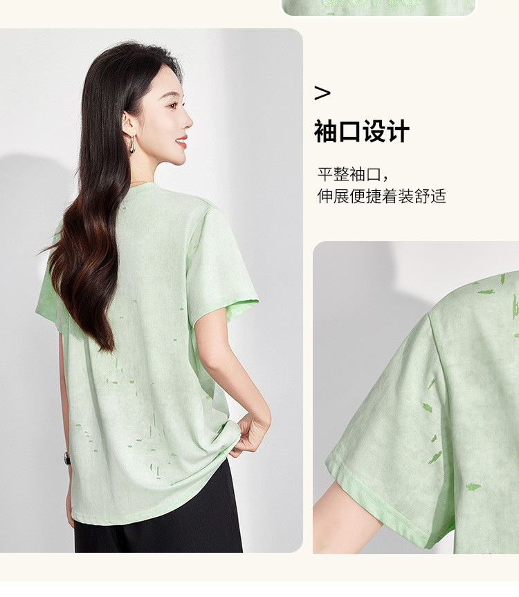 25夏季新款小个子温柔文艺风花朵刺绣T恤女式休闲套头短袖上衣 797407