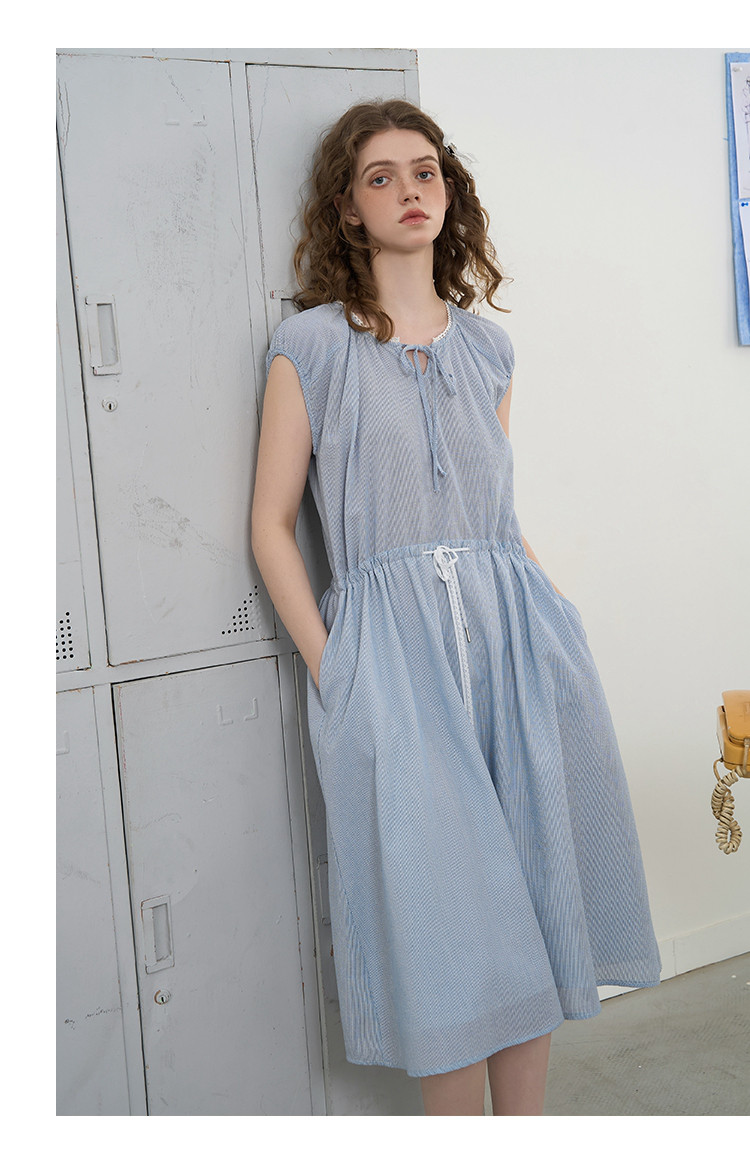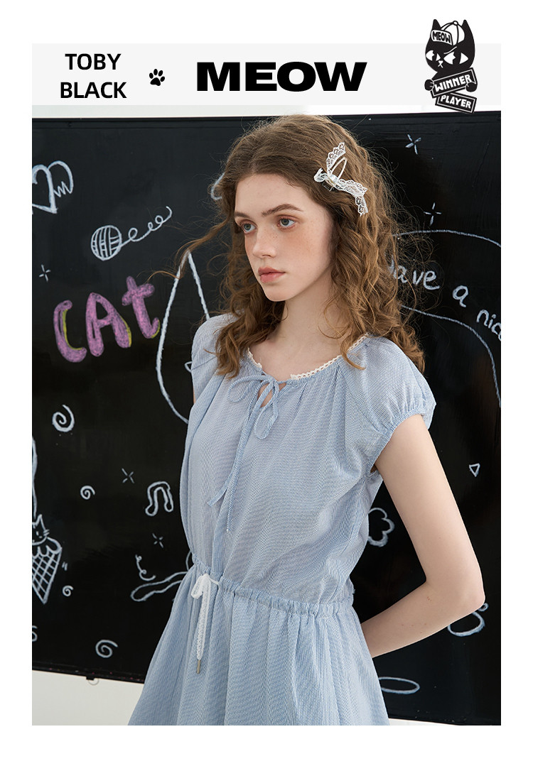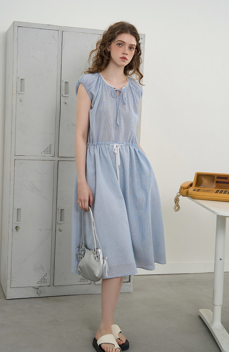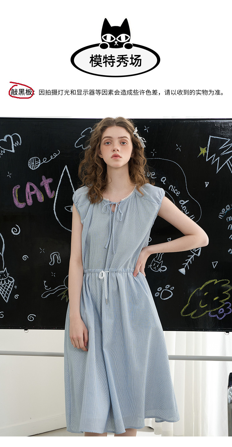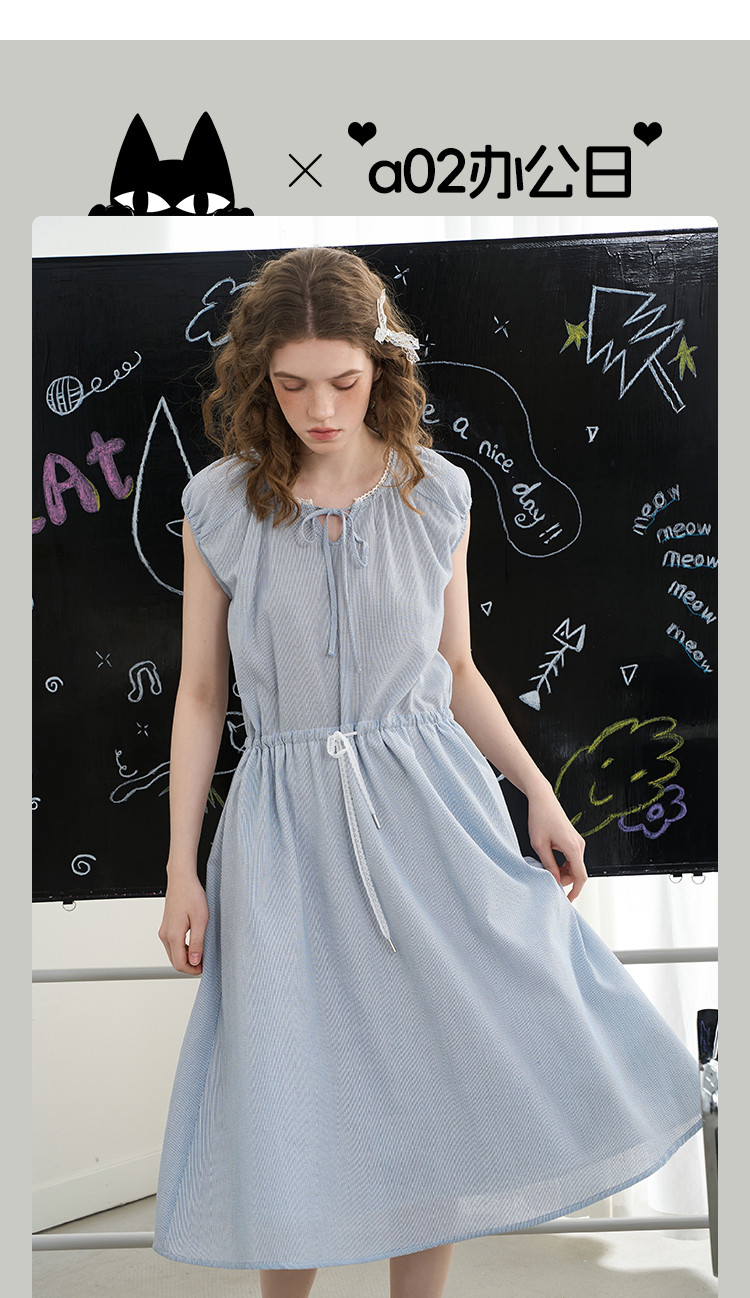 商品名称:花边拼接收腰高级感气质A字裙2025夏季百搭休闲女式连衣裙 363037