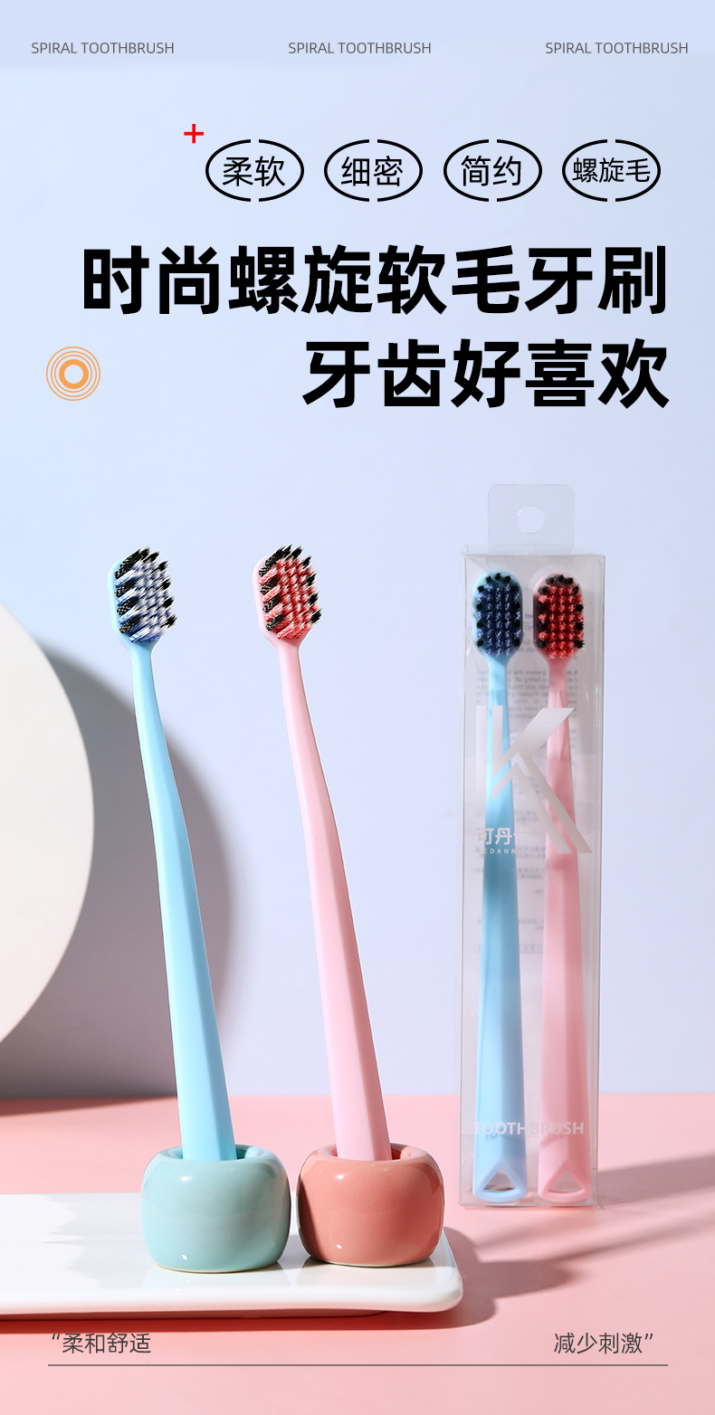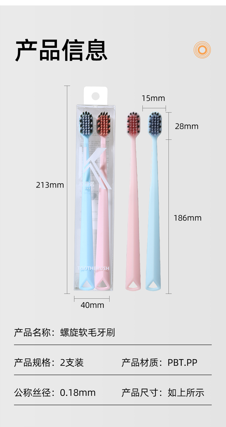 商品名称:可丹诺时尚螺旋软毛牙刷-粉蓝2支装 K332