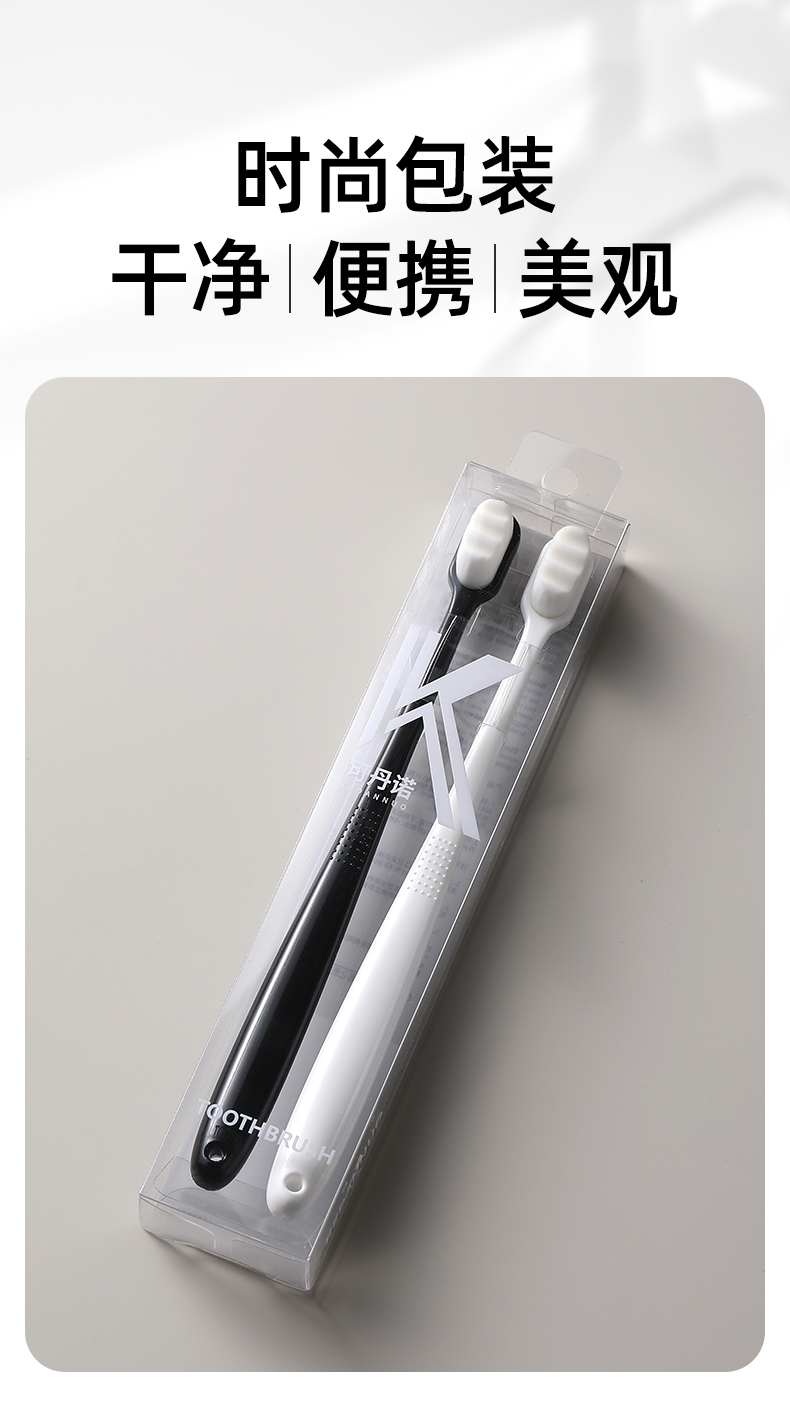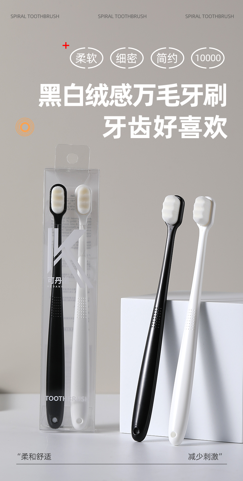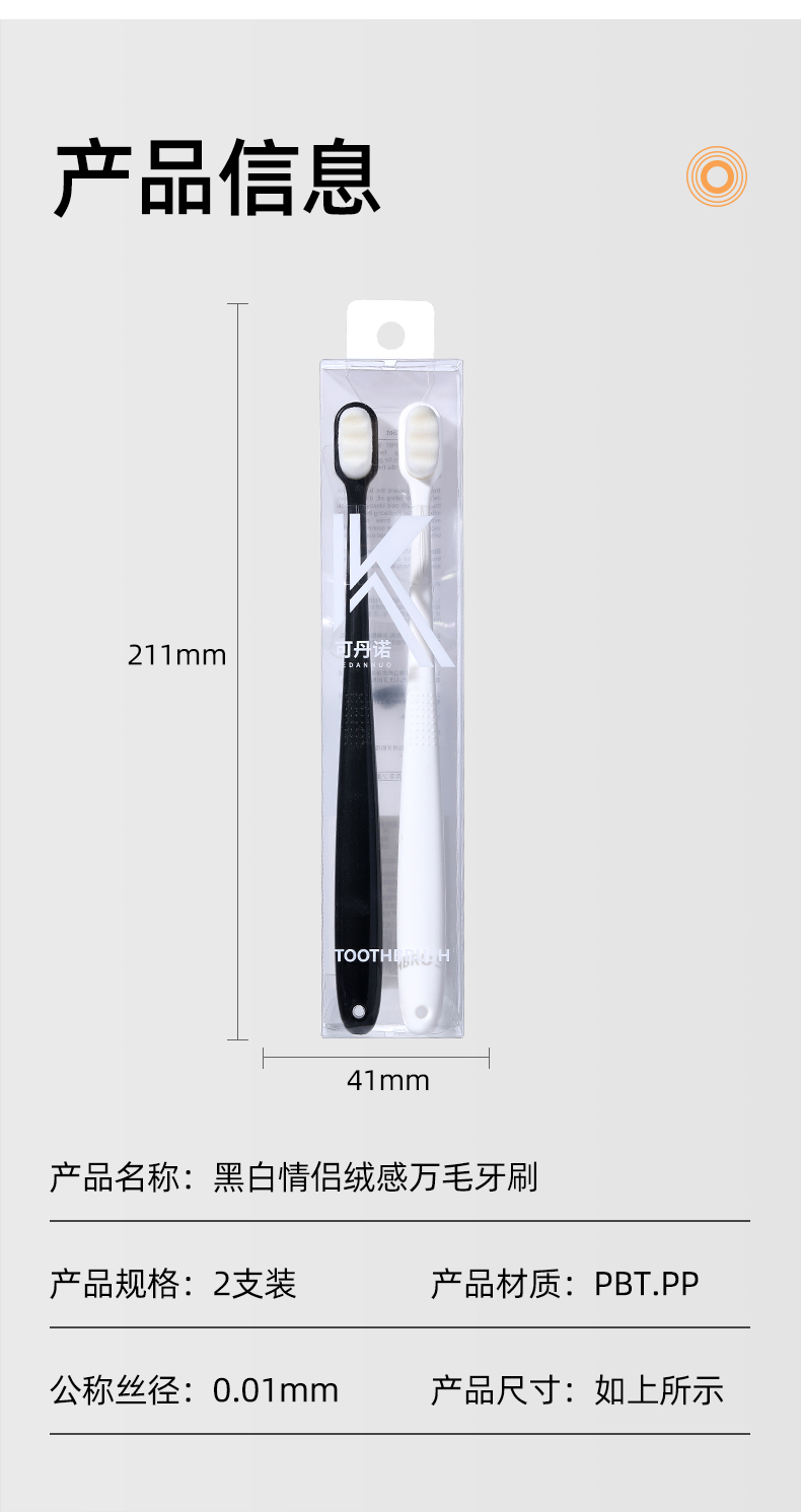 商品名称:可丹诺黑白情侣绒感万毛牙刷-黑白2支装 K178