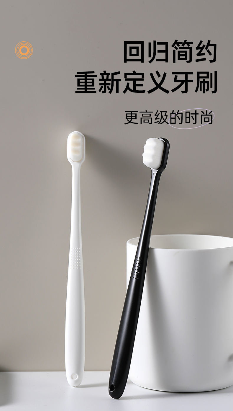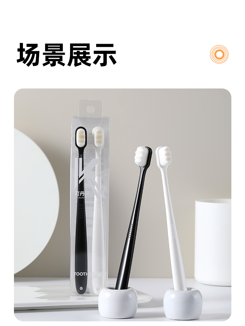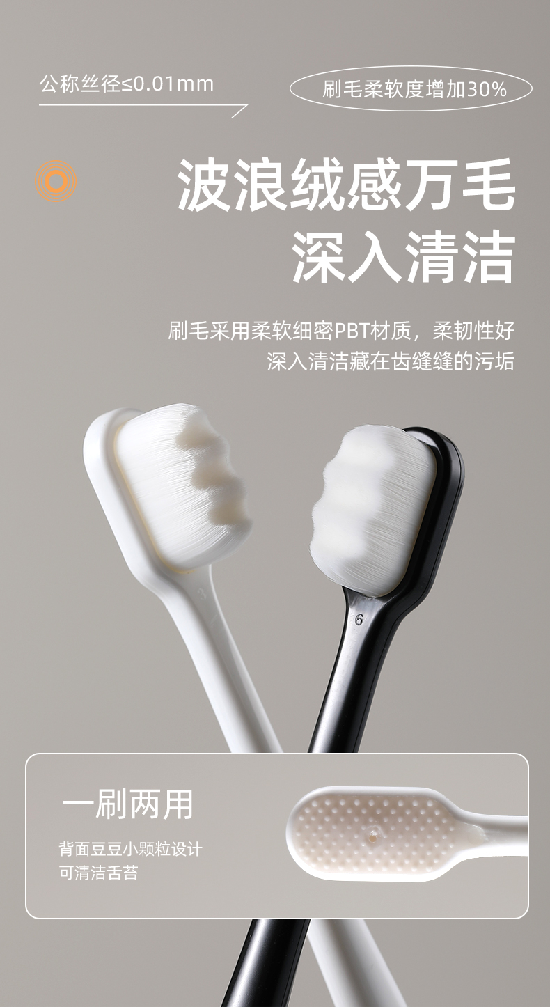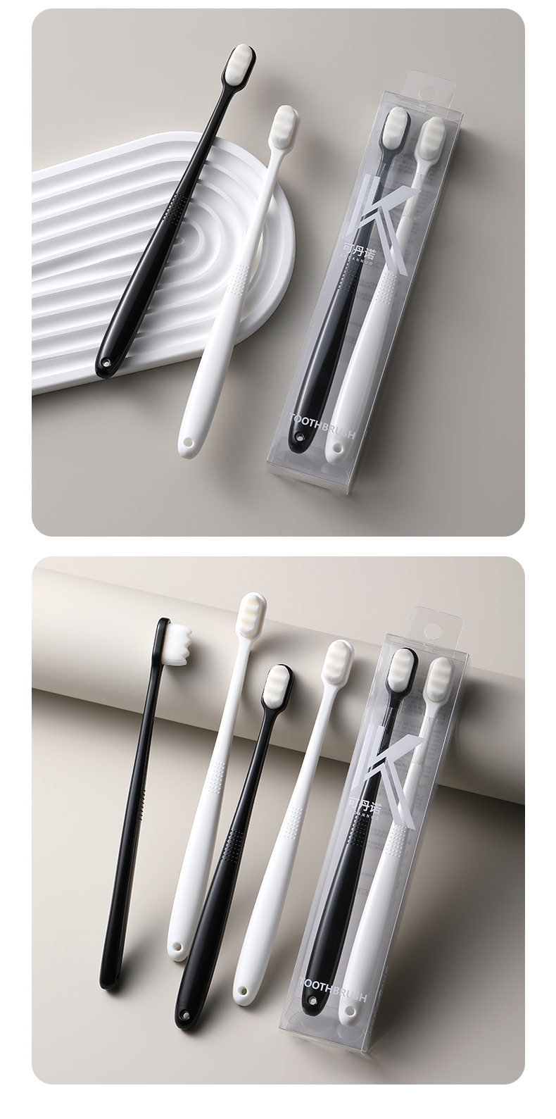 商品名称:可丹诺黑白情侣绒感万毛牙刷-黑白2支装 K178
