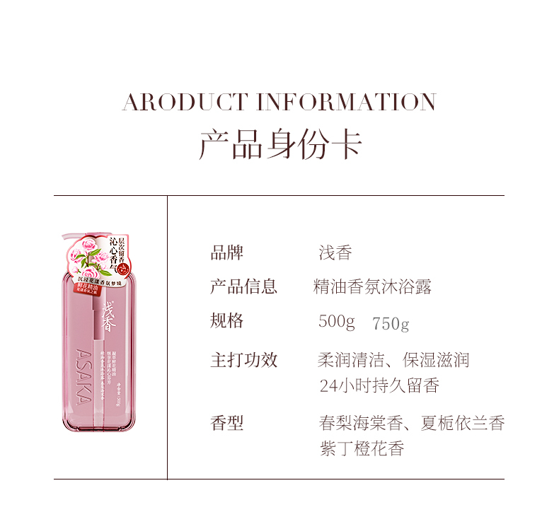 商品名称:ASAKA/浅香精油香氛沐浴露