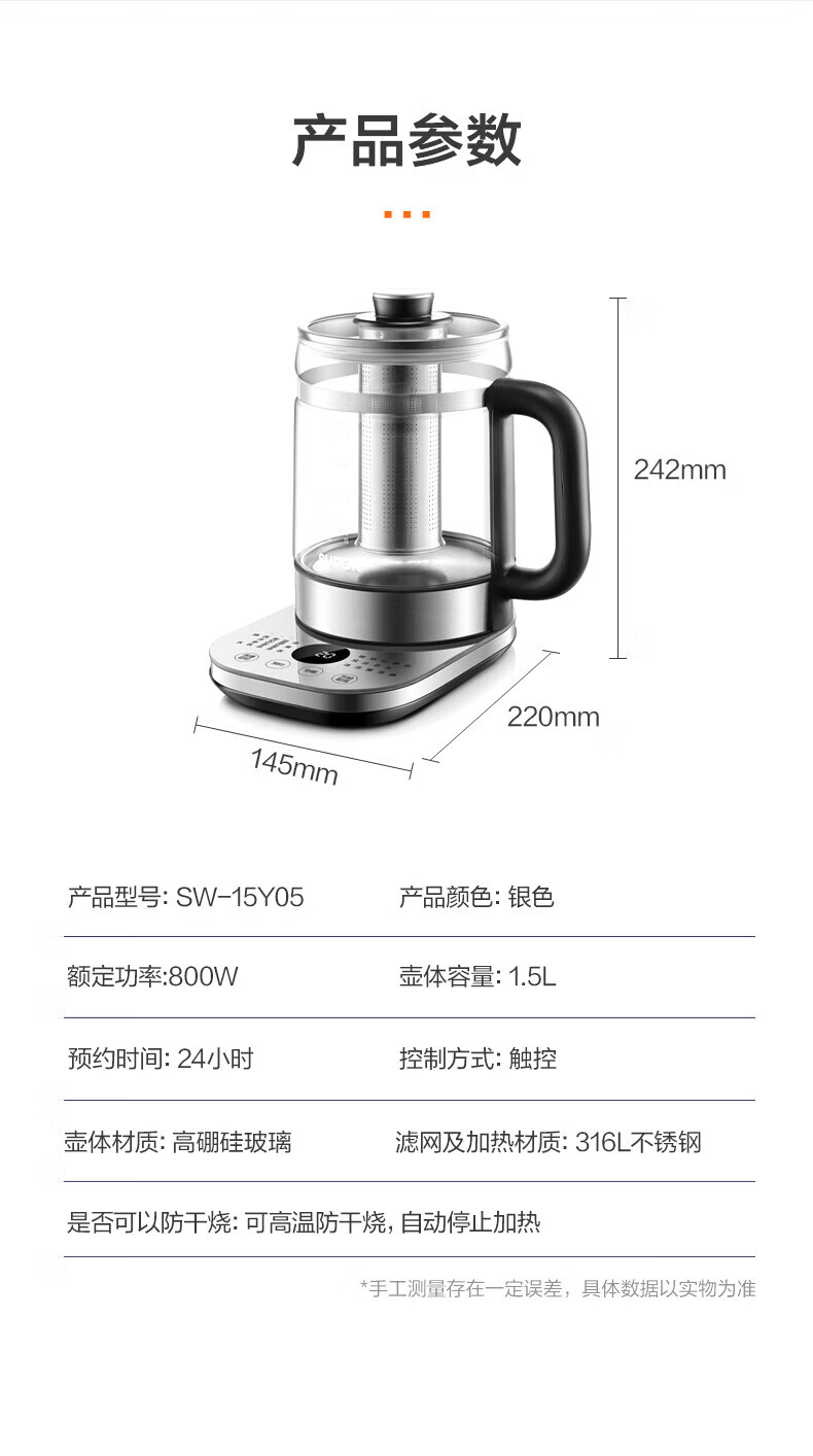 商品名称:SUPOR/苏泊尔1.5升养生壶SW-15Y05