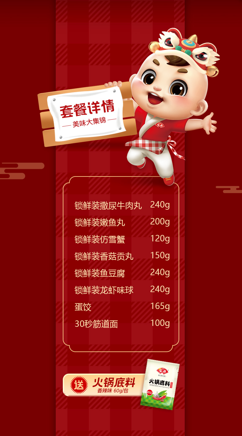 商品名称:【顺丰配送】安井锁鲜甄选火锅速冻食品组合1515g