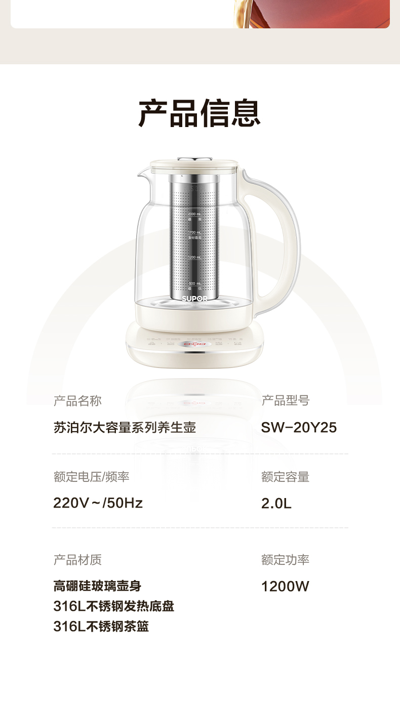 商品名称:SUPOR/苏泊尔2升大容量系列养生壶SW-20Y25