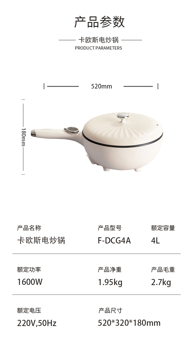 商品名称:finsybo/菲斯宝4升卡欧斯电炒锅F-DCG4A