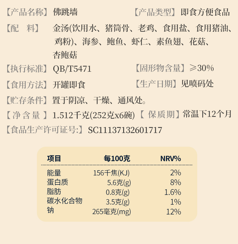 商品名称:燕叨叨佛跳墙高端礼盒252g*6碗