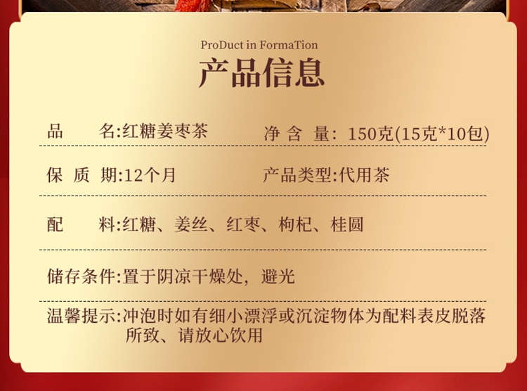商品名称:茶马世家红糖姜枣茶盒装150g