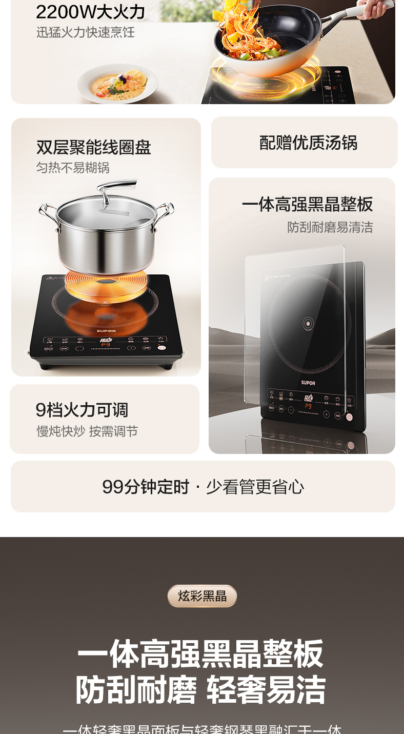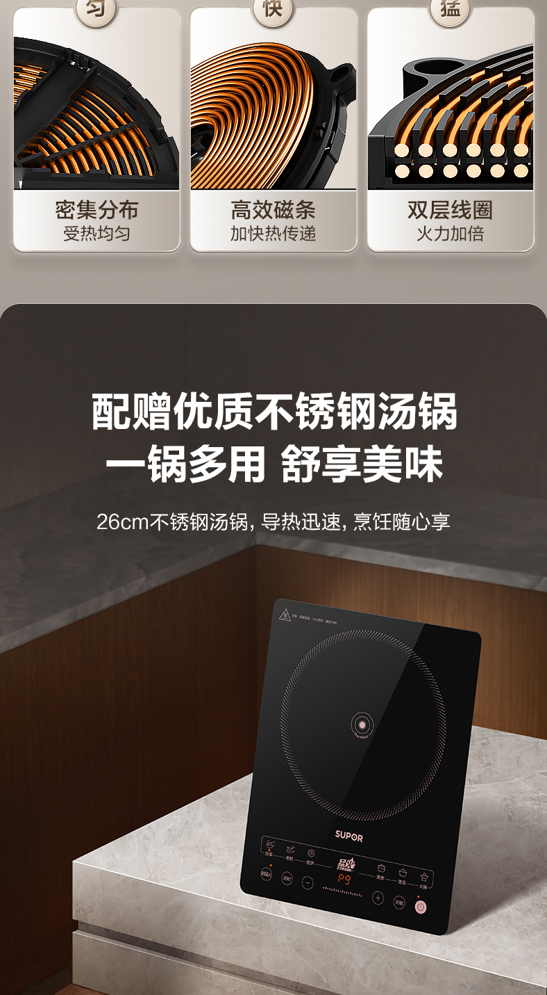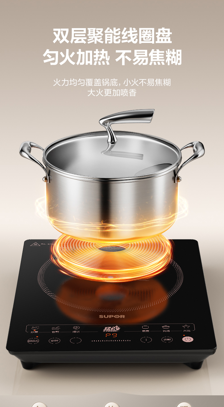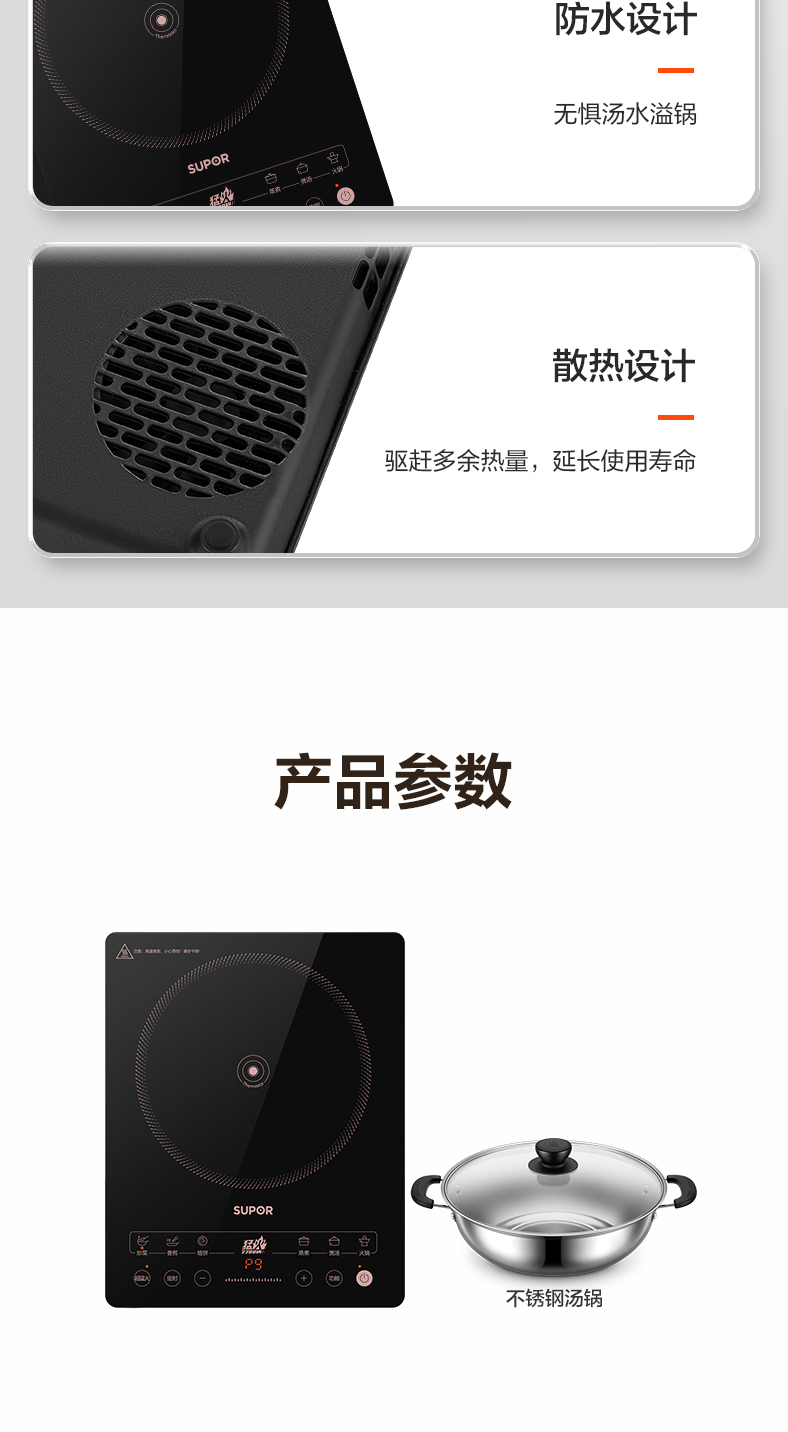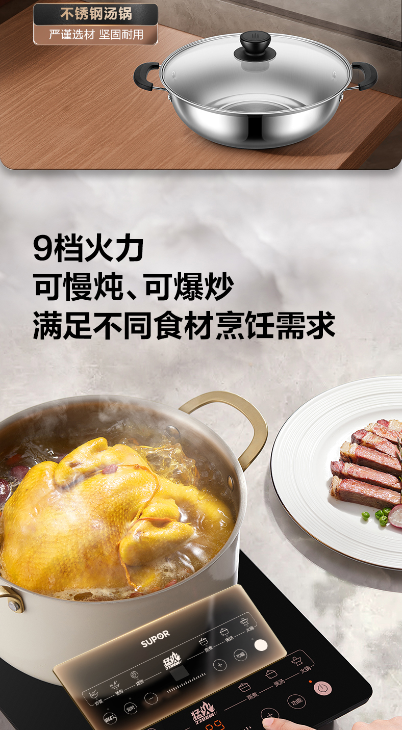 商品名称:SUPOR/苏泊尔26cm不锈钢汤锅+电磁炉C22-IA913T