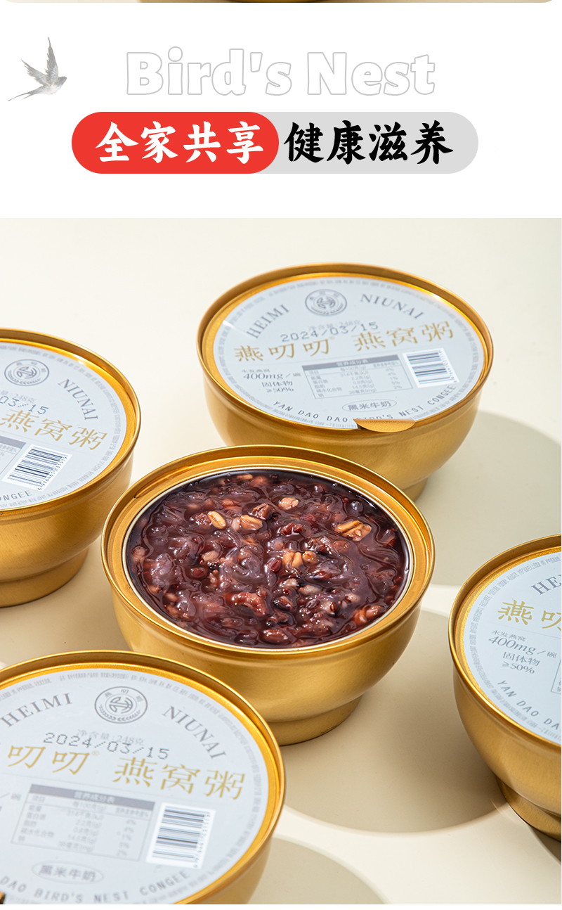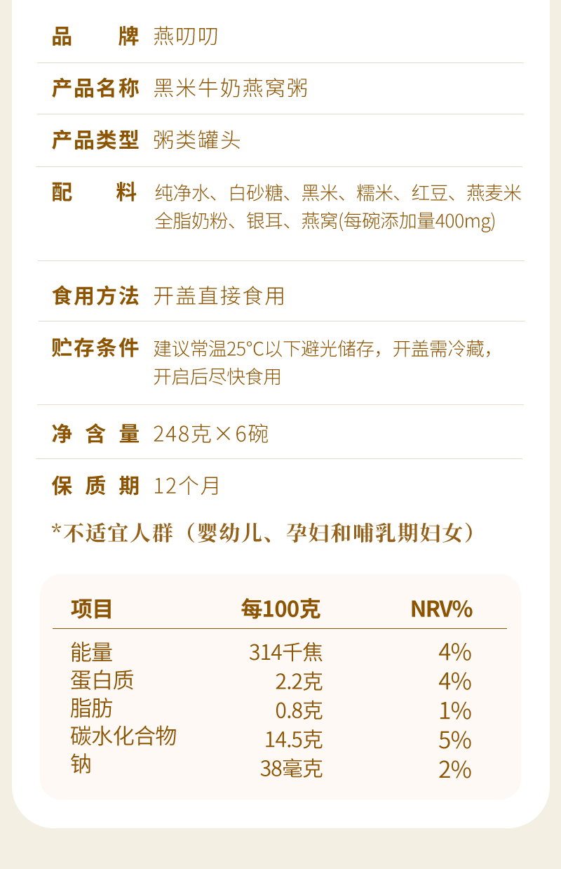商品名称:燕叨叨黑米牛奶燕窝粥整箱248g*6碗