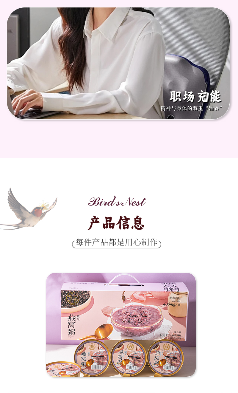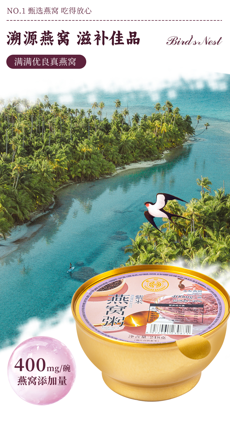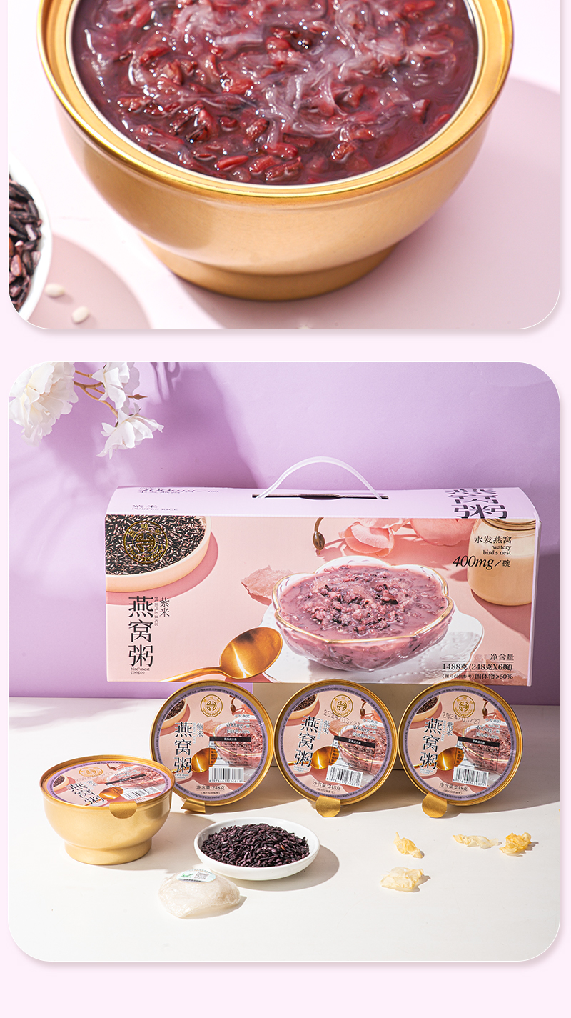 商品名称:燕叨叨紫米牛奶燕窝粥整箱248g*6碗