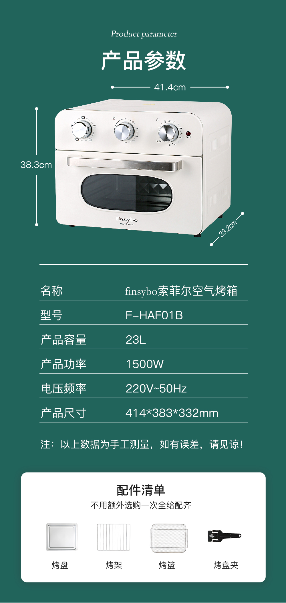 商品名称:finsybo/菲斯宝23升索菲尔空气烤箱F-HAF01B