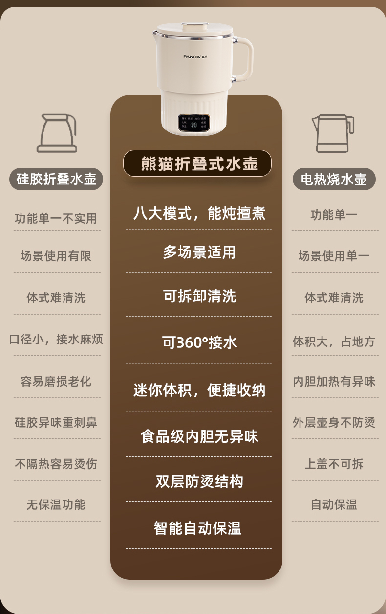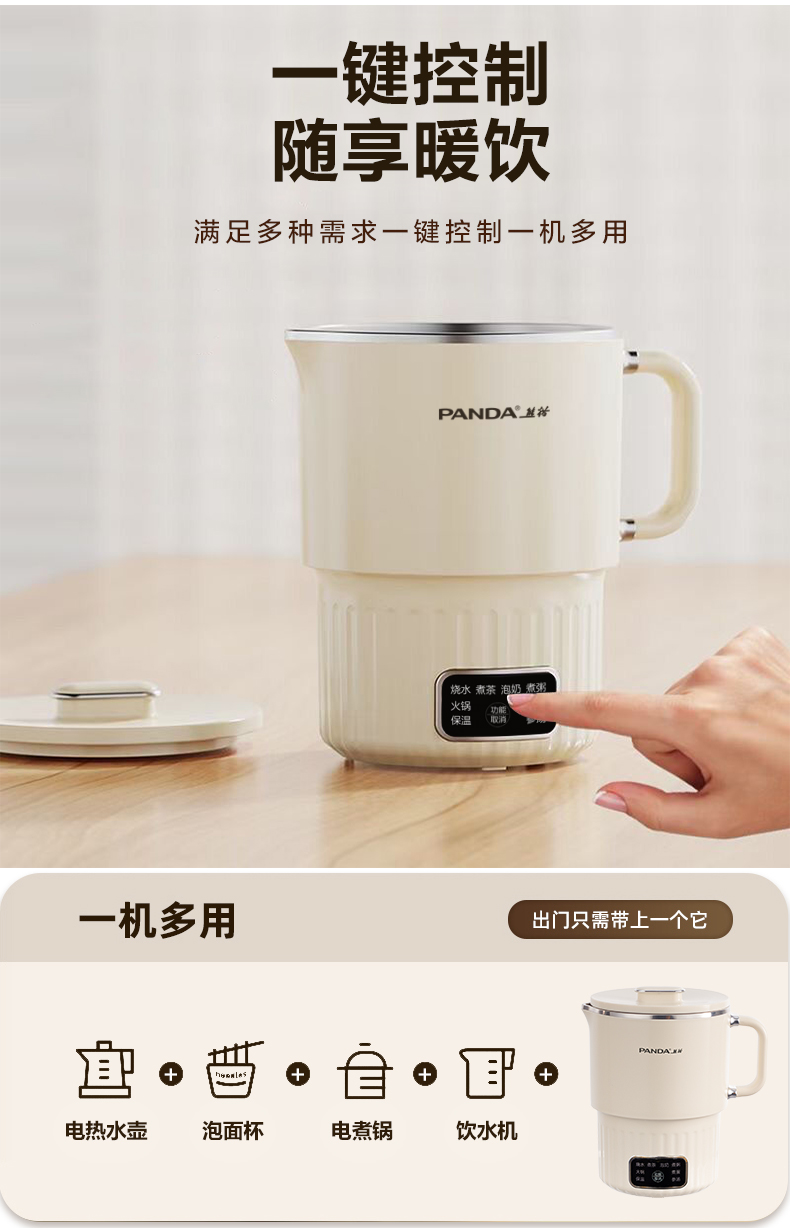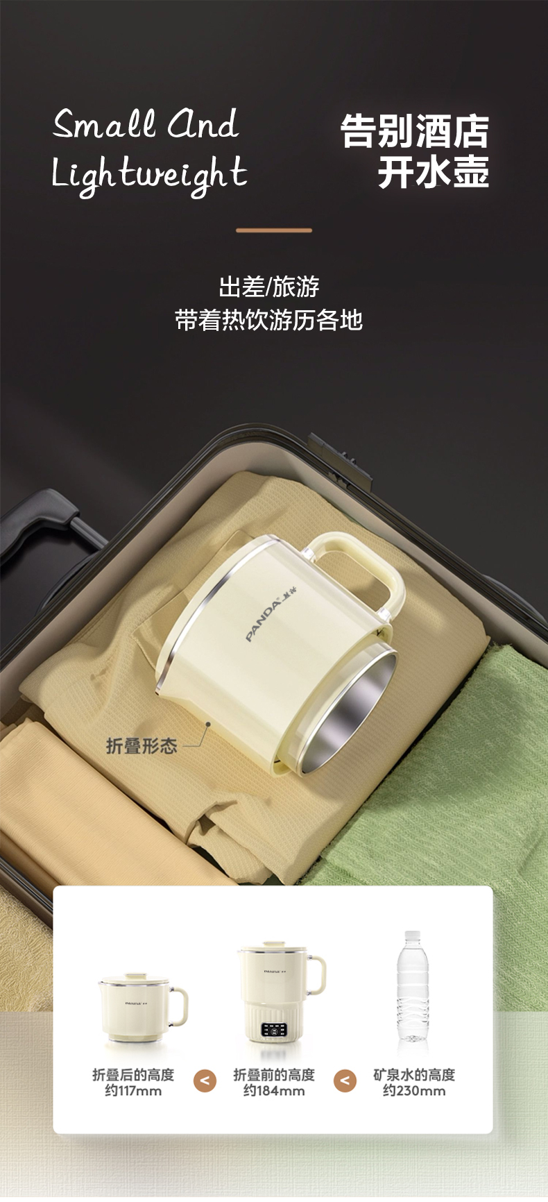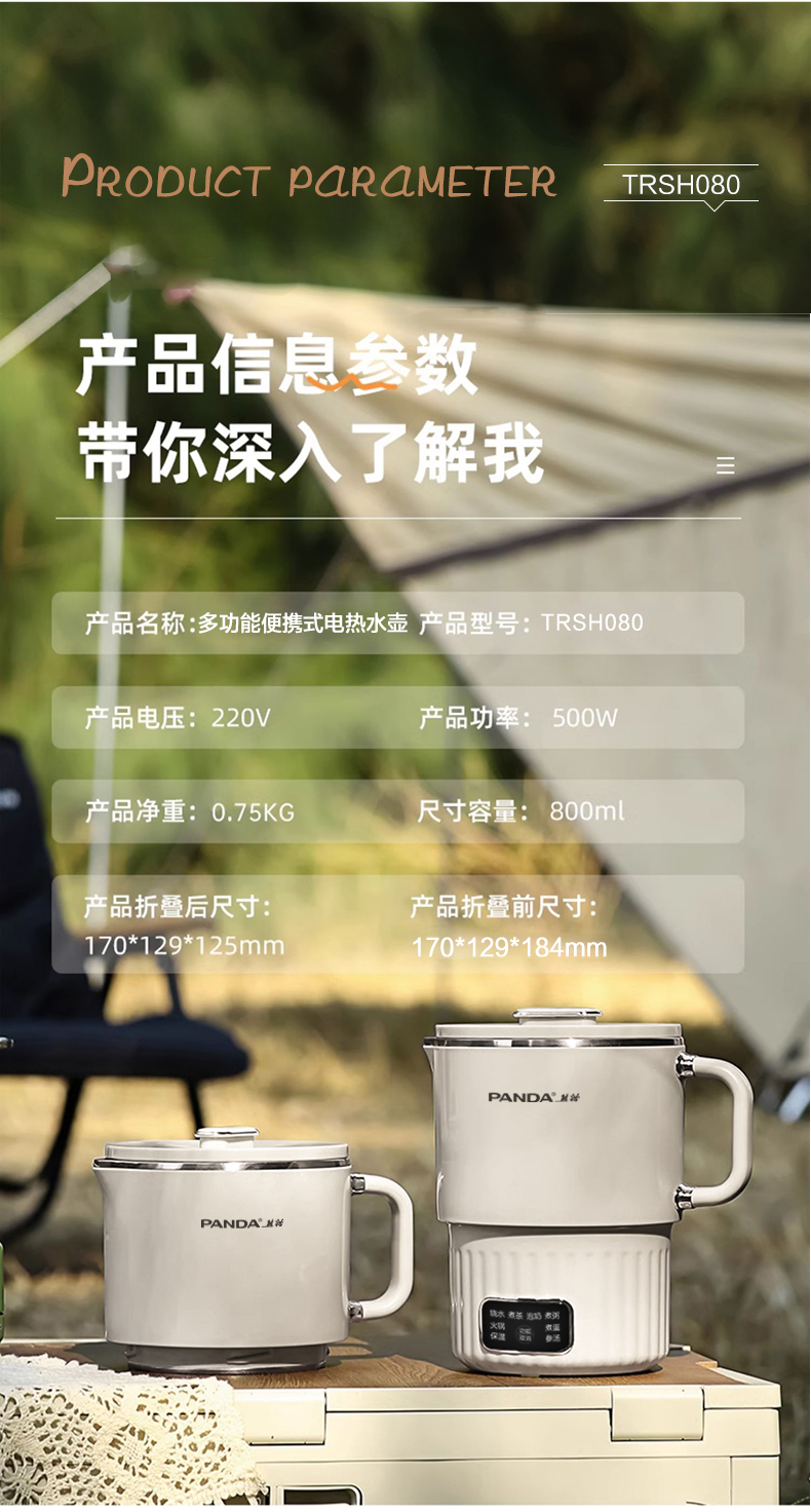 商品名称:PANDA/熊猫800毫升多功能折叠电热⽔壶TRSH080