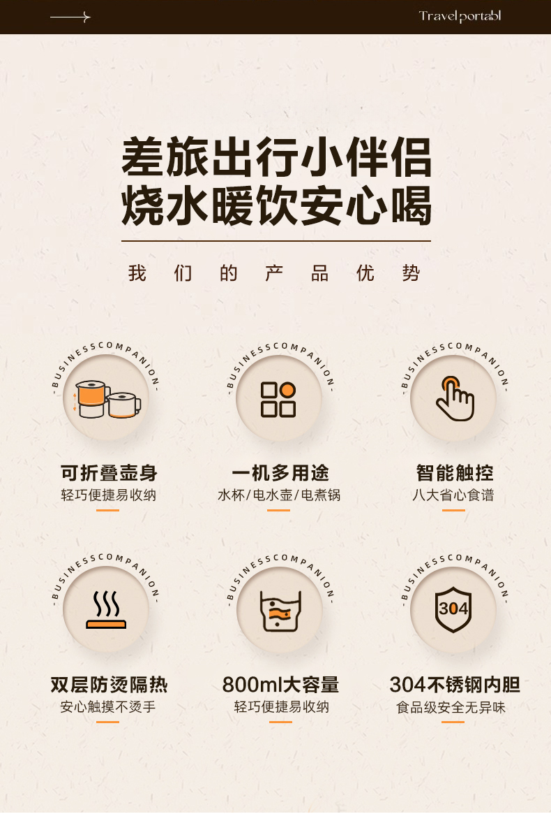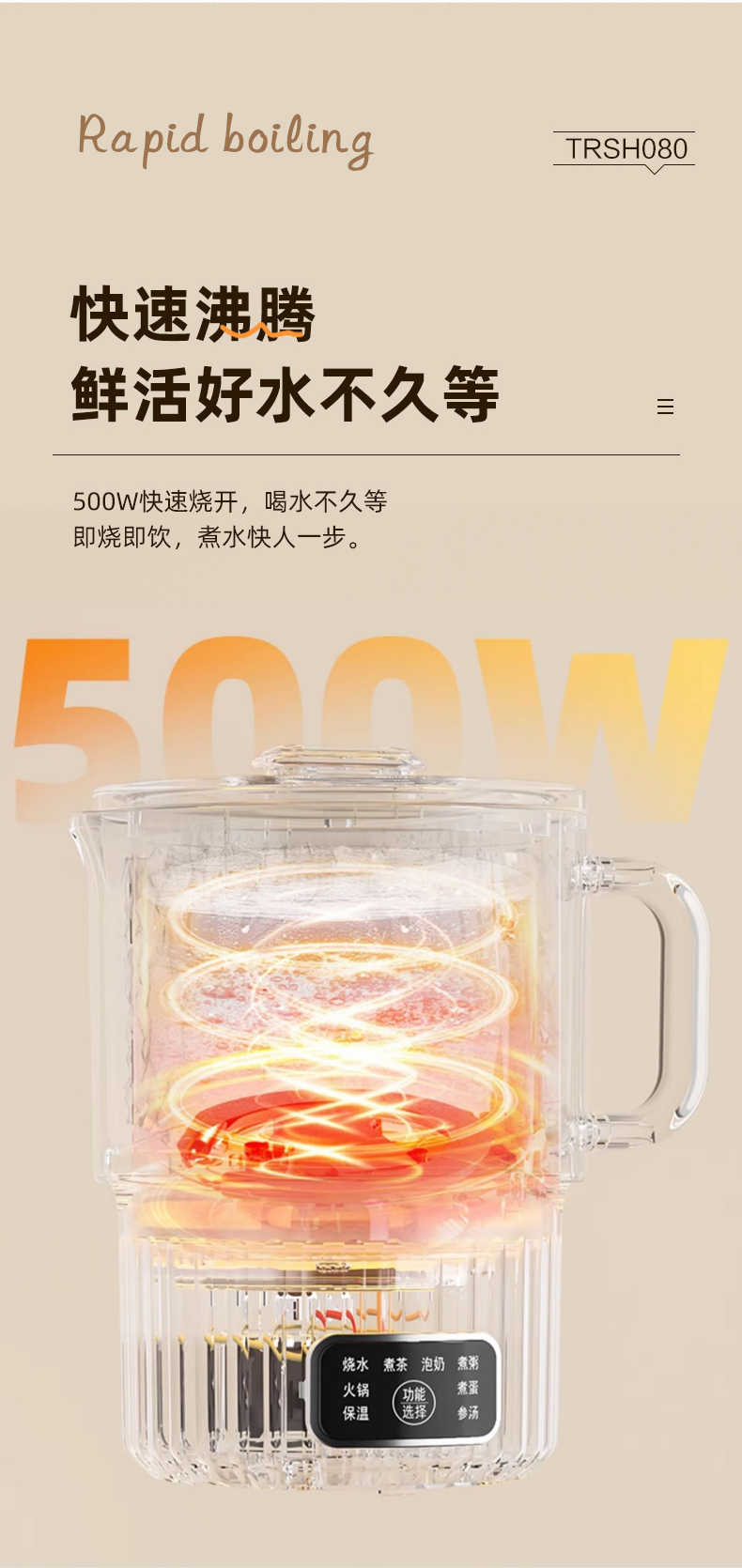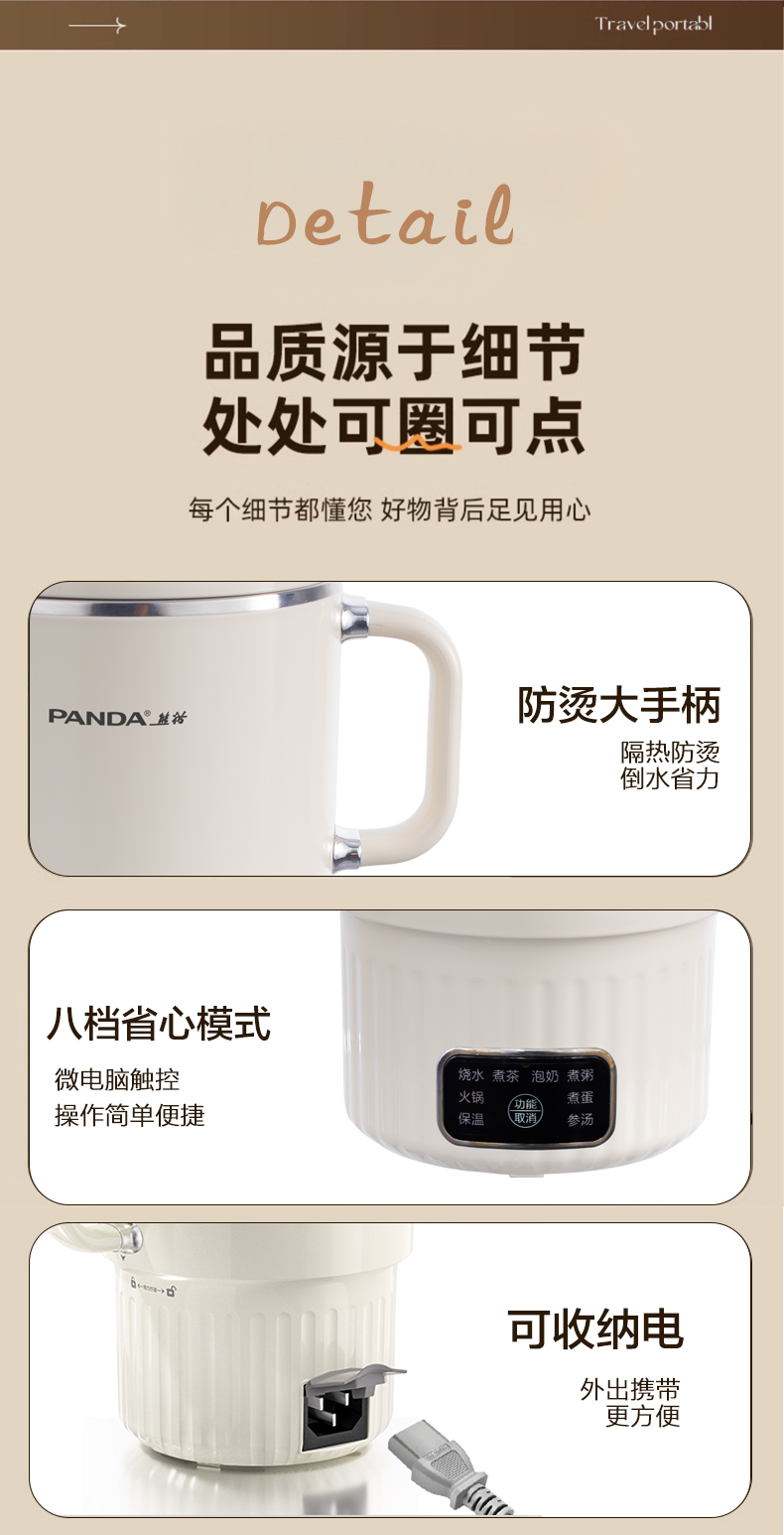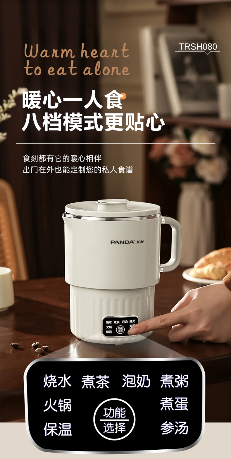 商品名称:PANDA/熊猫800毫升多功能折叠电热⽔壶TRSH080