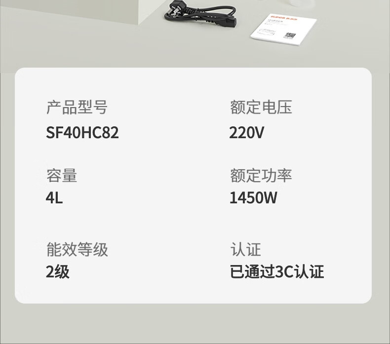 商品名称:SUPOR/苏泊尔4升远红外球釜IH电饭煲SF40HC82