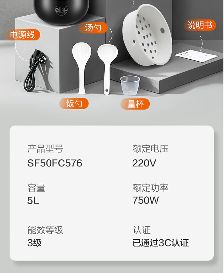 商品名称:SUPOR/苏泊尔5升智能球釜电饭煲SF50FC576