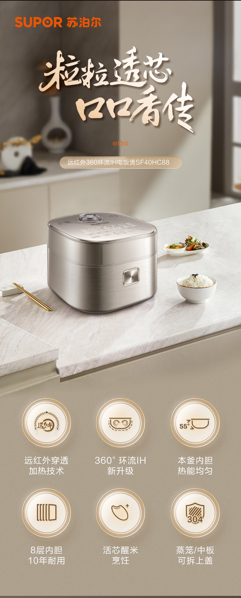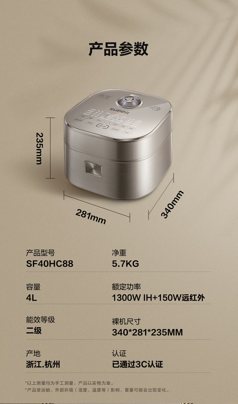 商品名称:SUPOR/苏泊尔4升远红外本釜IH电饭煲SF40HC88