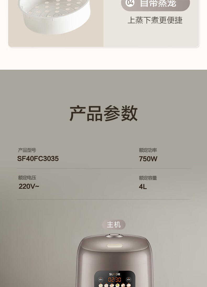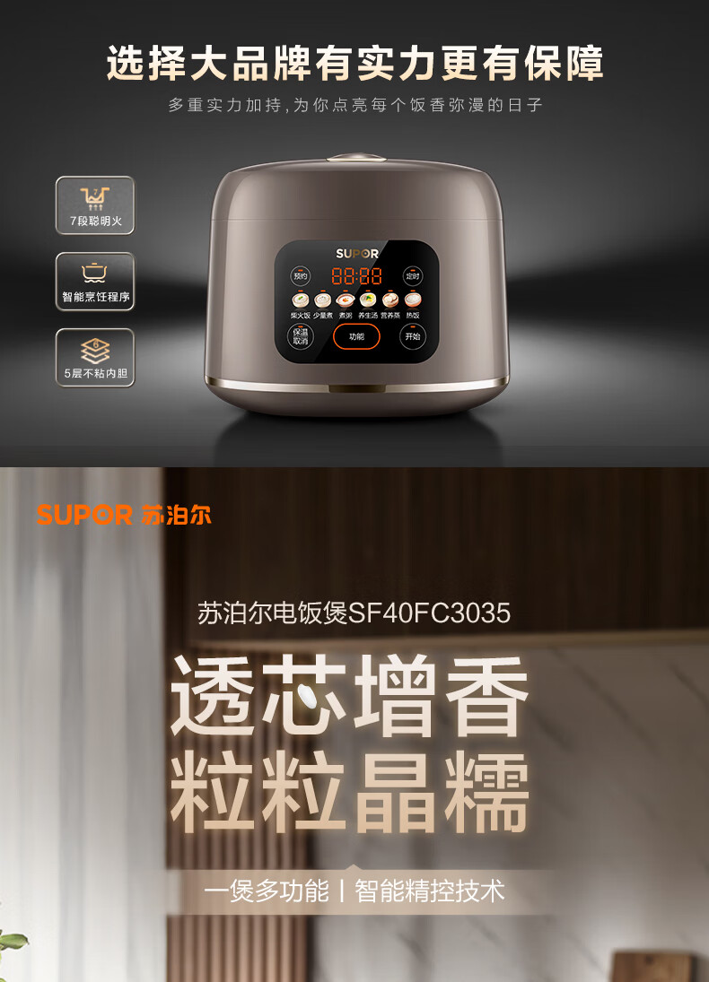 商品名称:SUPOR/苏泊尔4升豪华智能电饭煲SF40FC3035