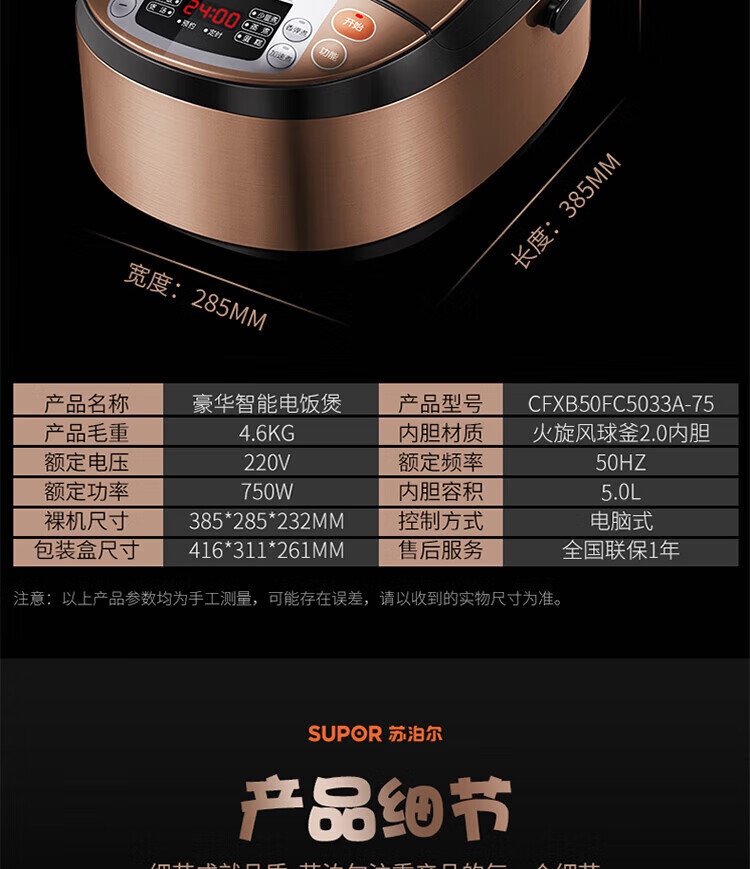 商品名称:SUPOR/苏泊尔5升智能球釜电饭煲CFXB50FC5033A
