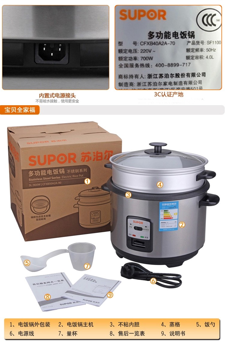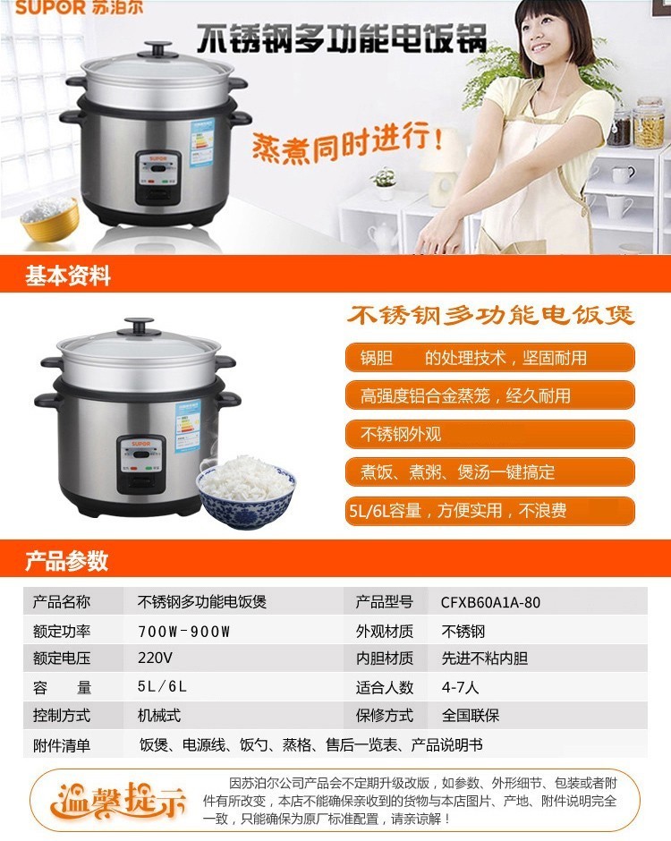 商品名称:SUPOR/苏泊尔6升电饭煲CFXB60A1A-80