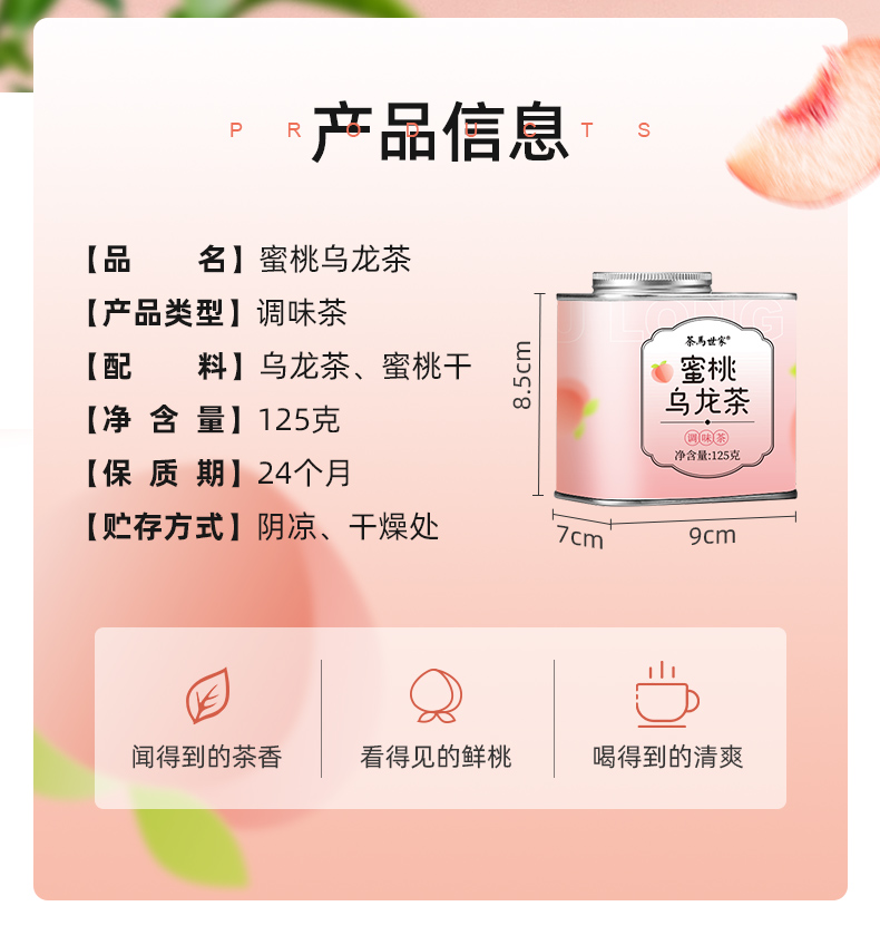 商品名称:茶马世家蜜桃乌龙花果茶铁罐125g