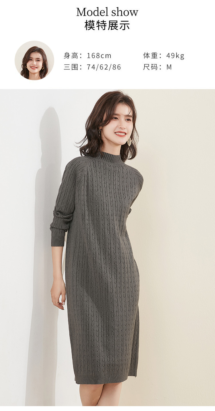 商品名称:【配大衣】2024春款慵懒风针织打底连衣裙女式中长款过膝毛衣 514207