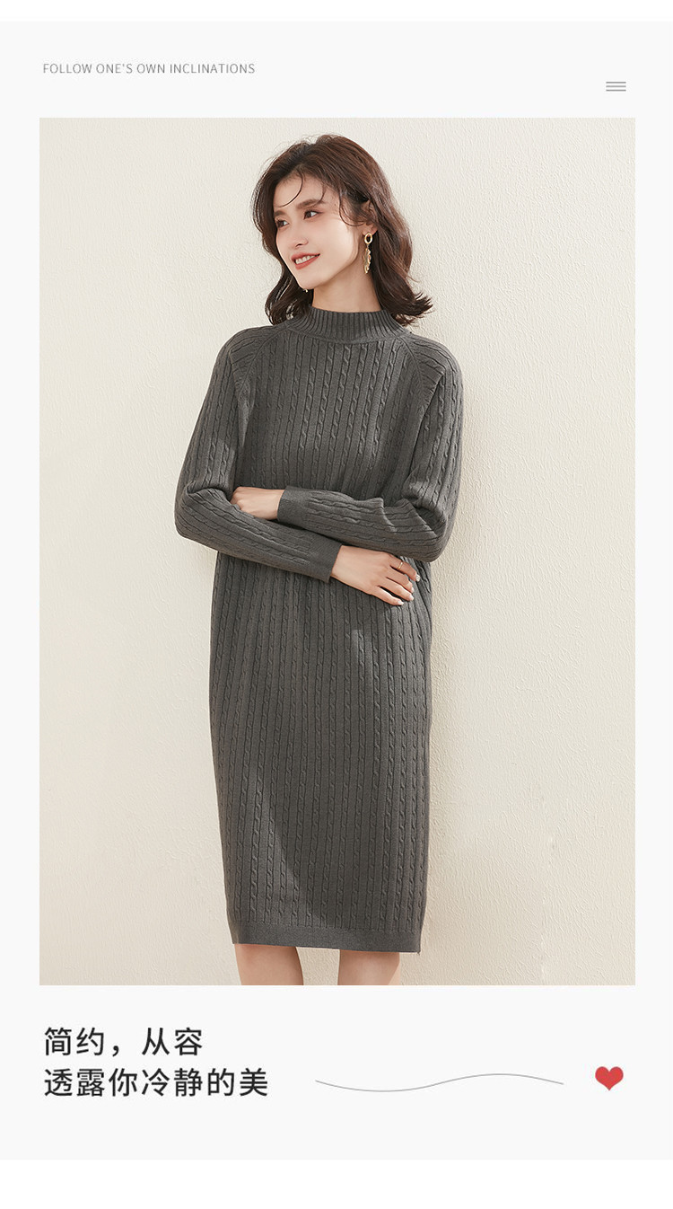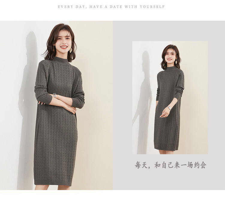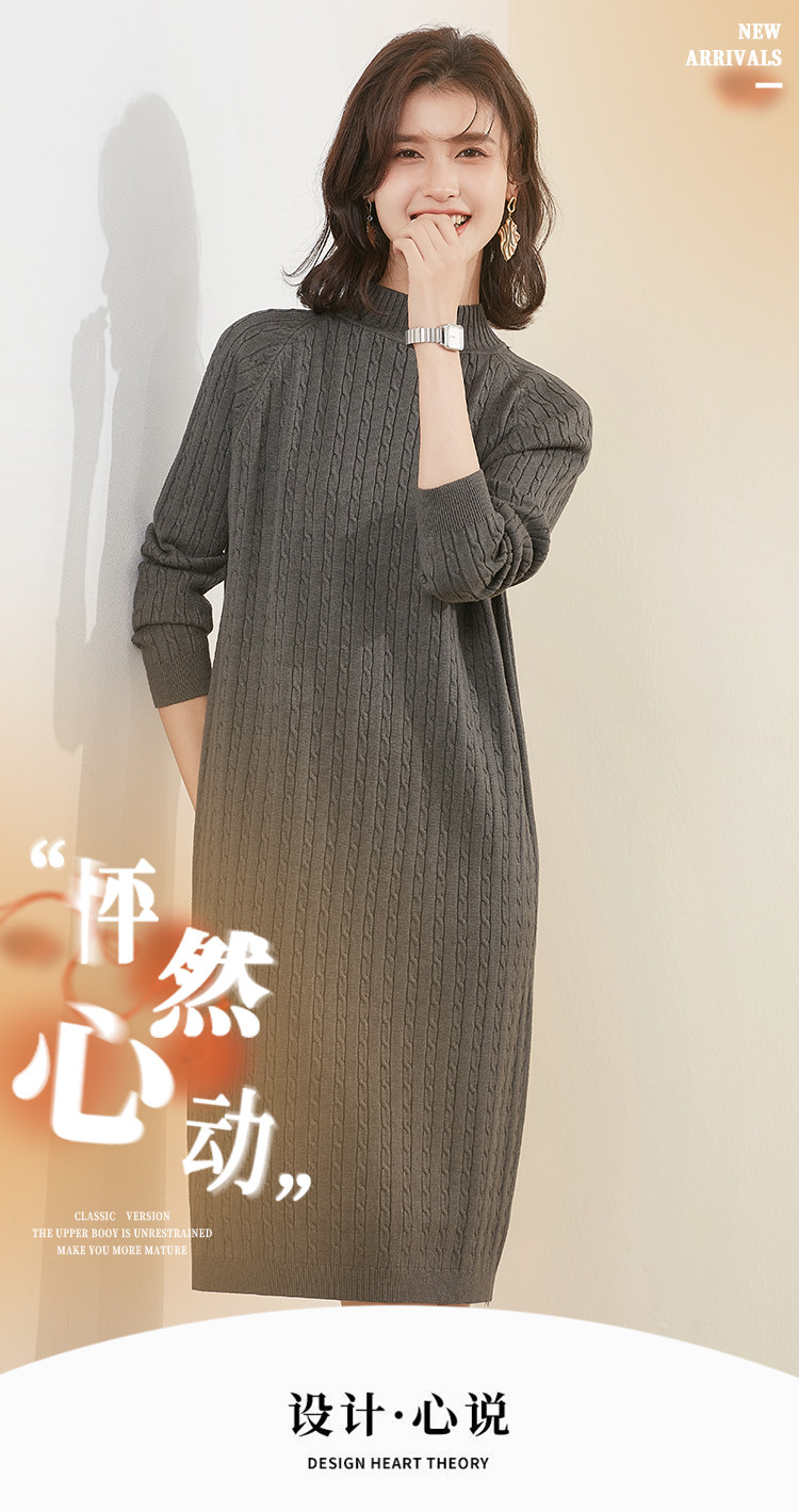 【配大衣】2024春款慵懒风针织打底连衣裙女式中长款过膝毛衣 514207