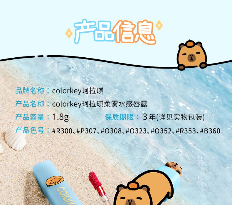商品名称:Colorkey/珂拉琪 卡皮巴拉限定 柔雾水感唇露唇釉