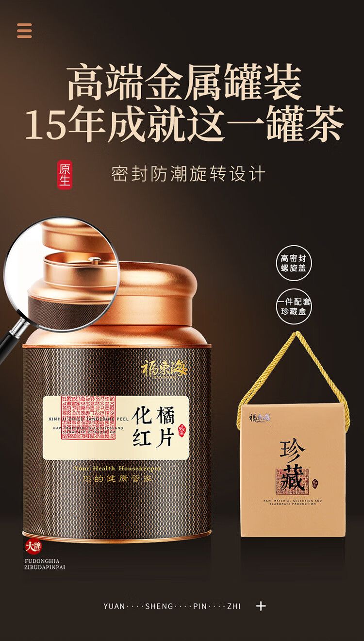 商品名称:【福东海】化橘红片铁罐礼盒200克/盒