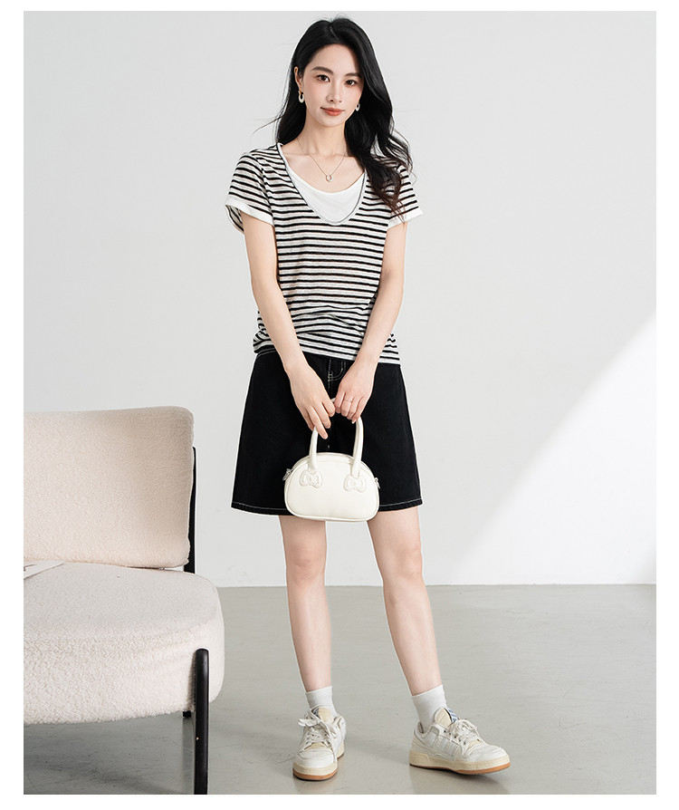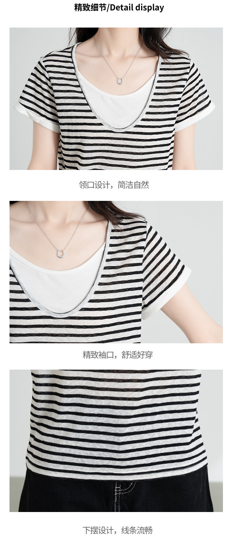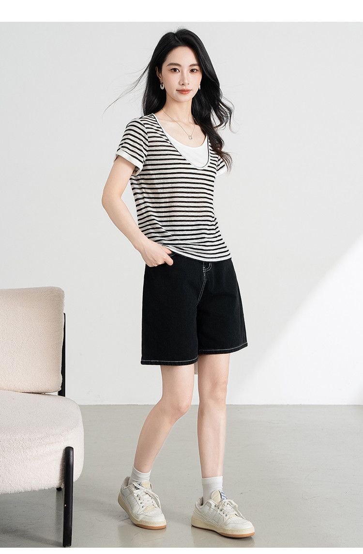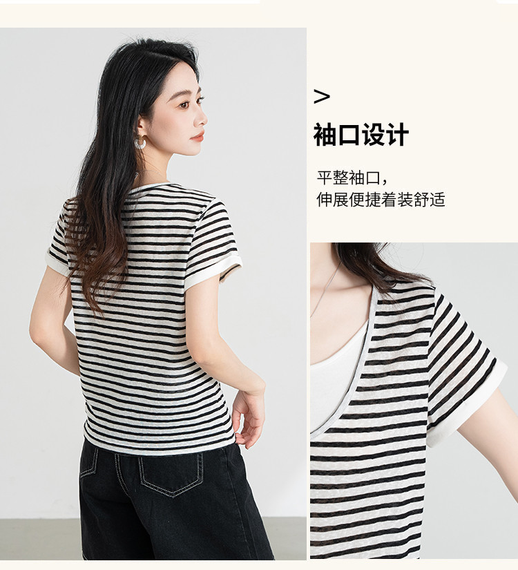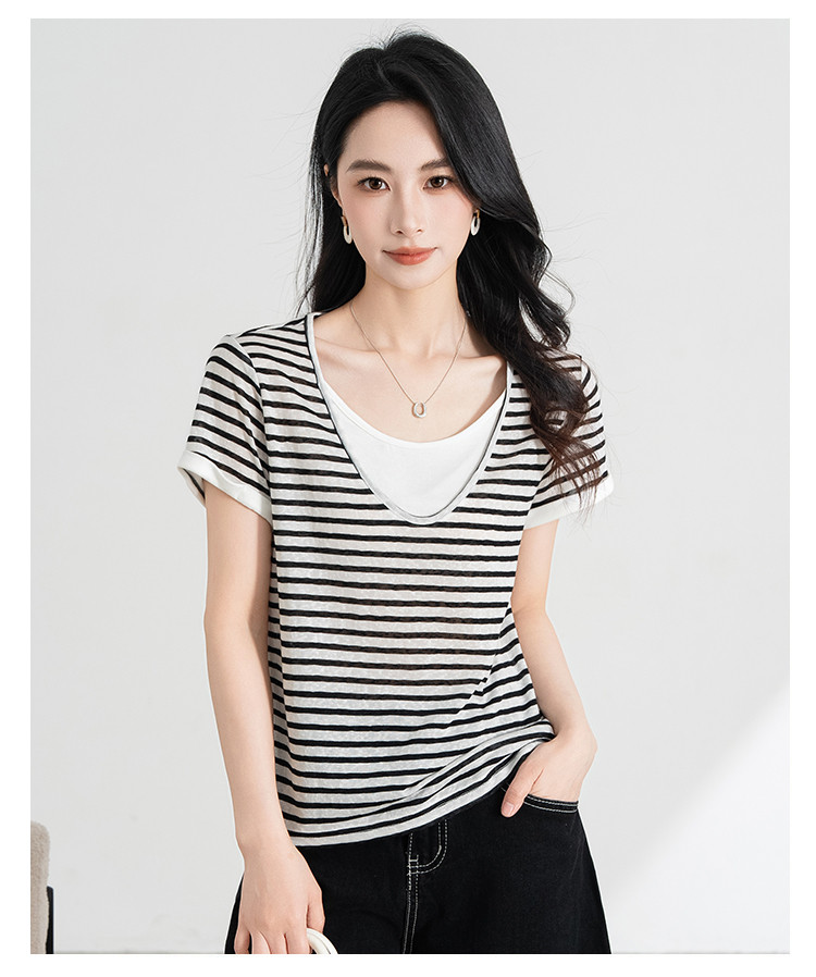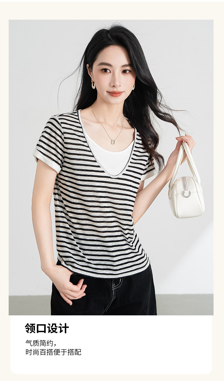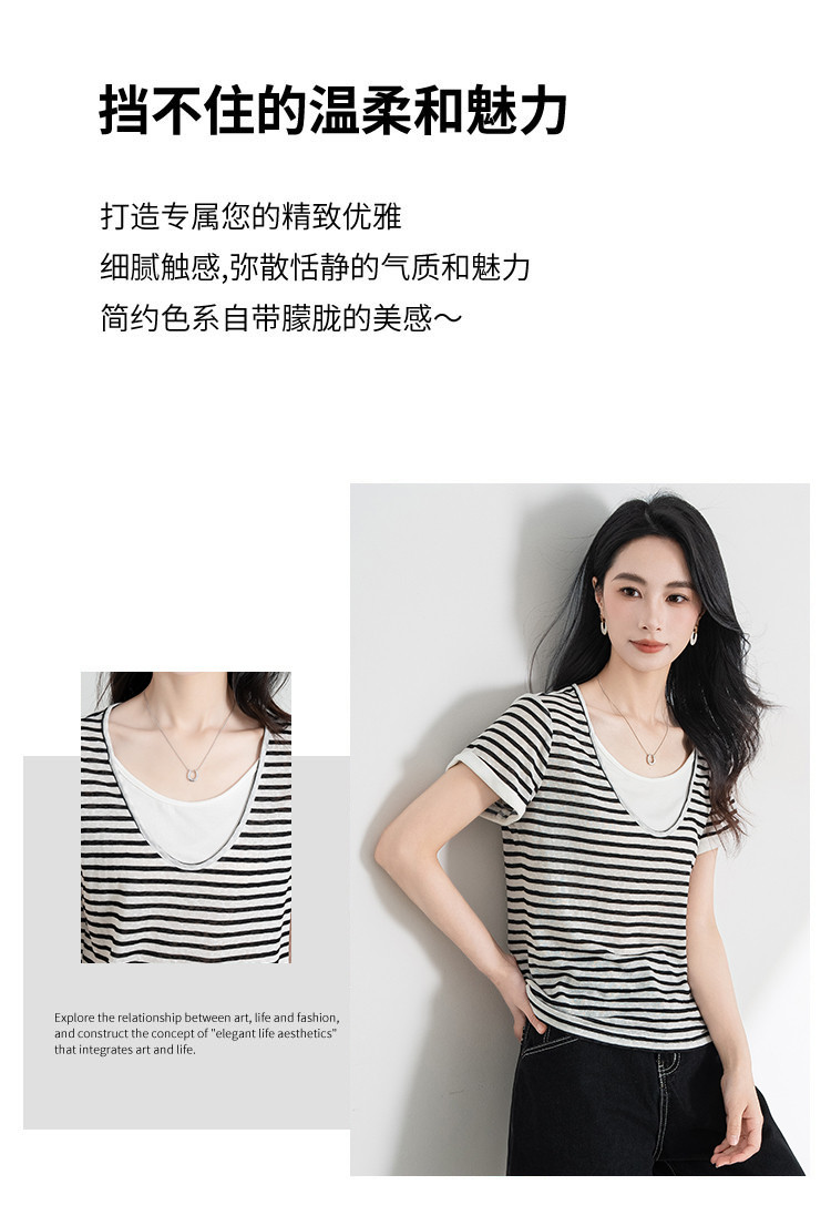 商品名称:【叠穿层次感】莱赛尔条纹假两件短袖t恤女夏季2025休闲t恤 612511