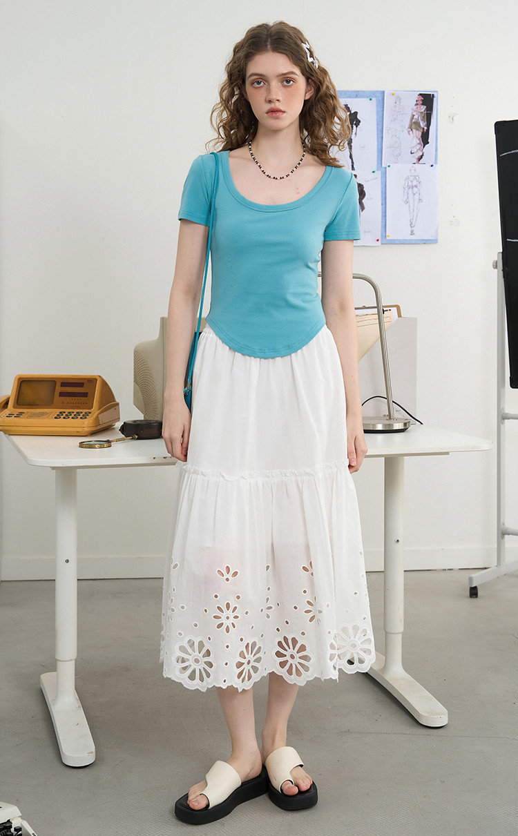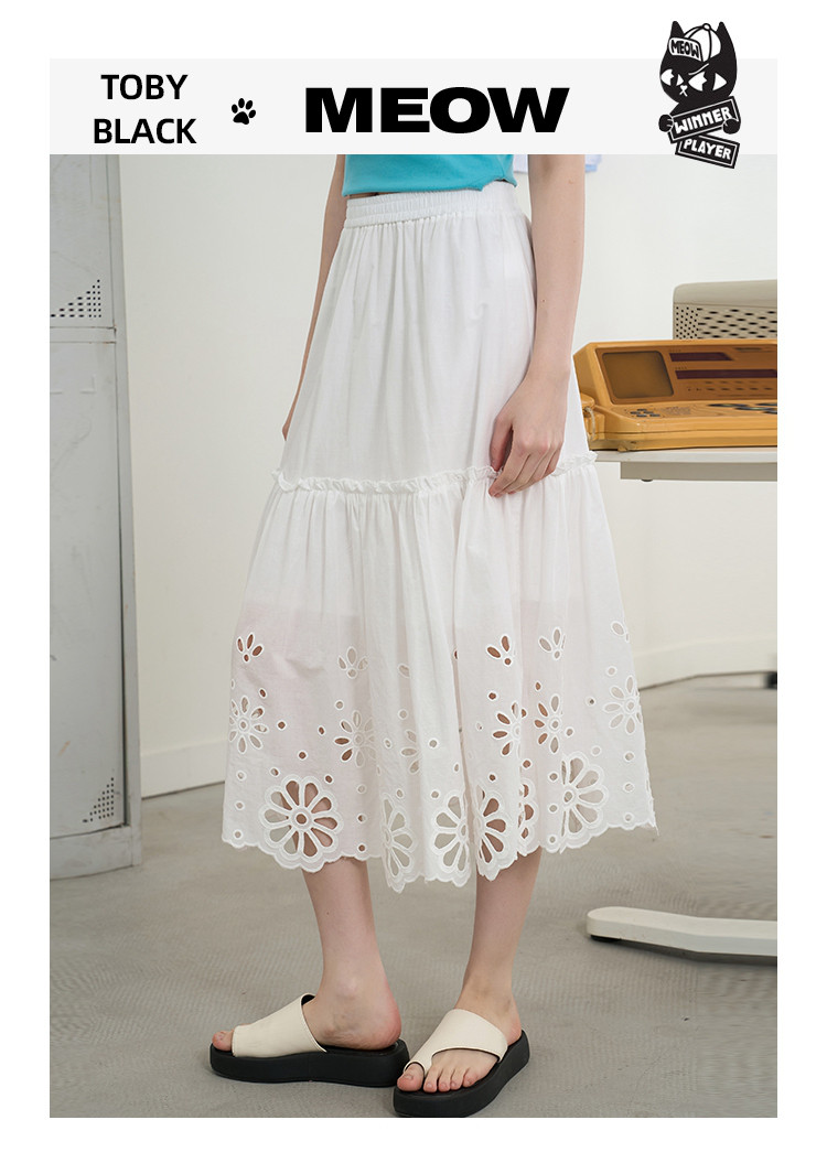 商品名称:精致文艺风刺绣修身显瘦半身裙2025夏季休闲百搭半截裙 485405
