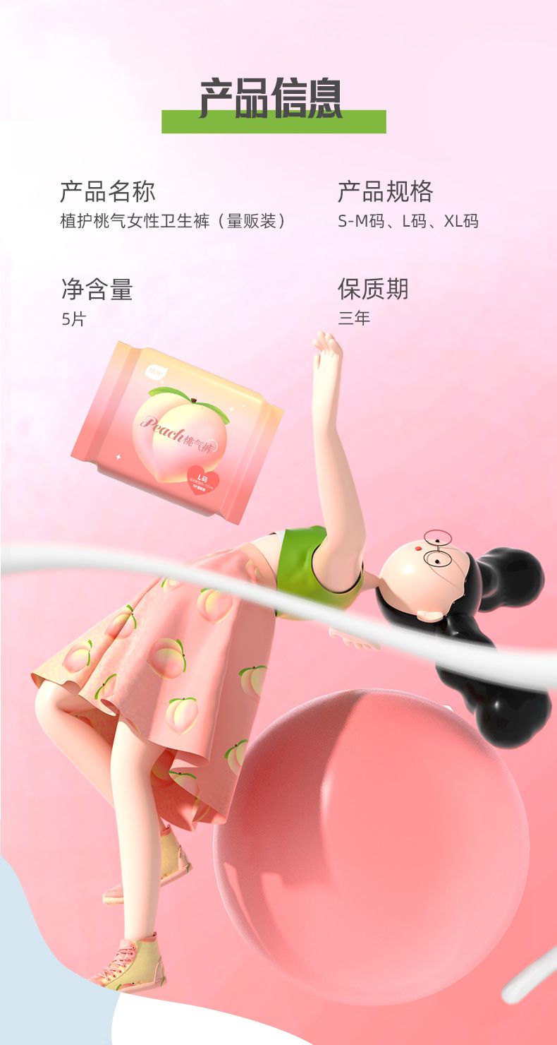商品名称:植护 蜜桃女性桃气卫生裤(量贩装) 5片*4包/箱